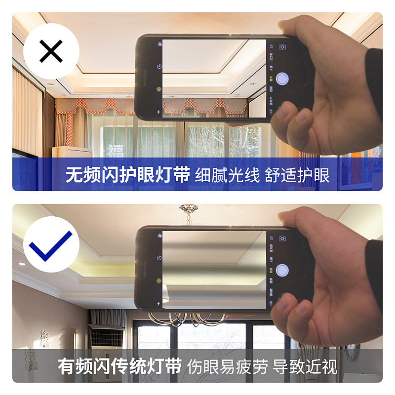 无频闪灯带led三色变色家用客厅吊顶变光超亮护眼灯带条灯.条220v