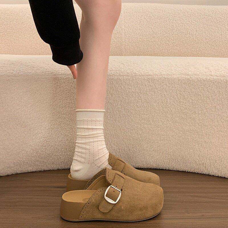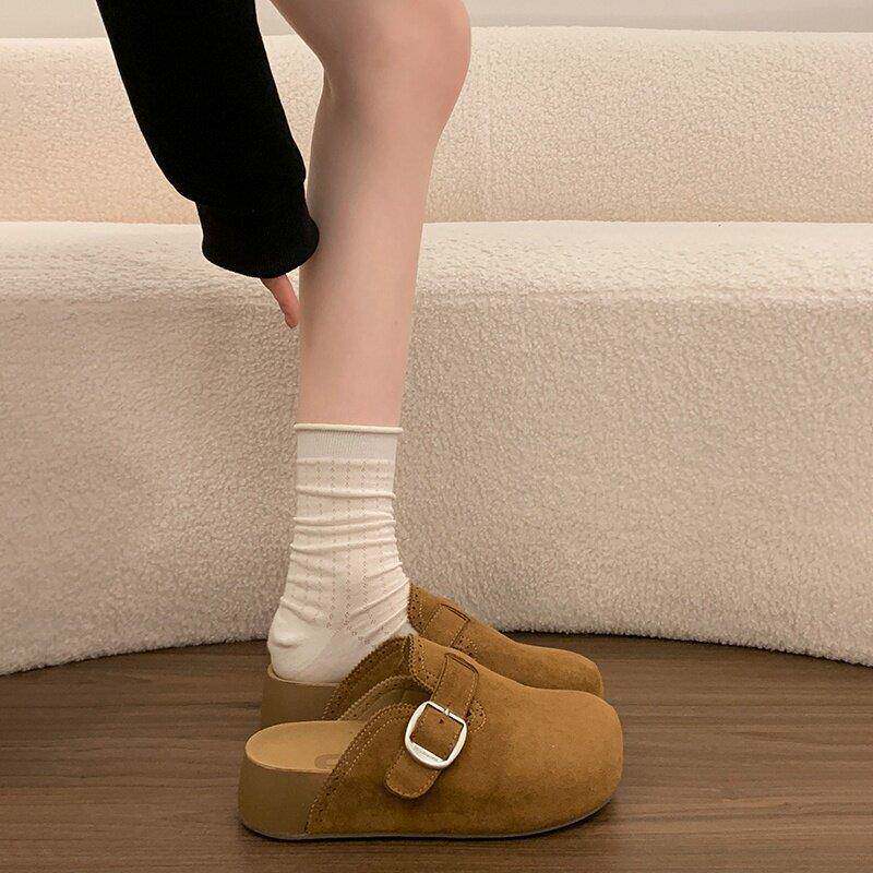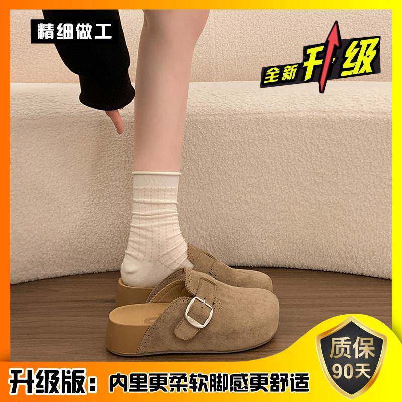 春夏配裙子0315r 女外穿2026新款 复古勃肯鞋 厚底一脚蹬包头半拖鞋
