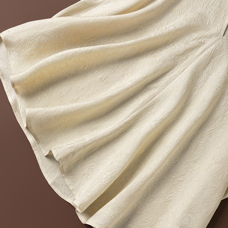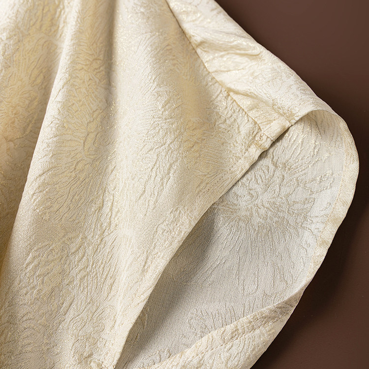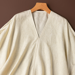 宽松大码 米色立体金丝提花真丝V领蝙蝠袖 飘逸T恤 奢美 闪闪发光