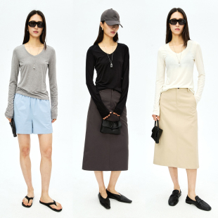 亲肤打底长袖 V领合身 面膜T恤 Studios MRS