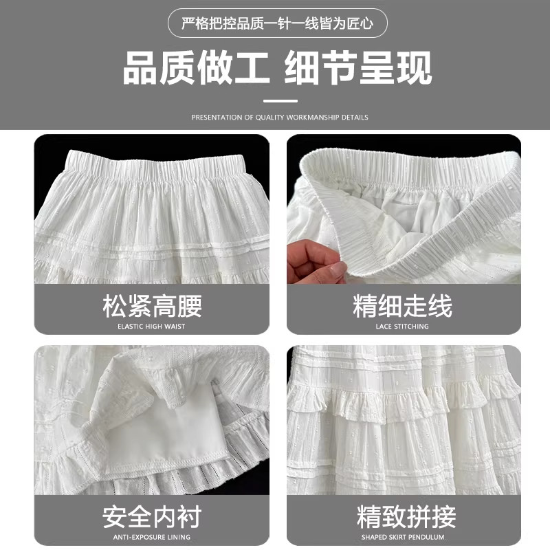 韩版 高腰百搭防走光小个子A字蕾丝短裙 甜美白色蛋糕半身裙女夏季