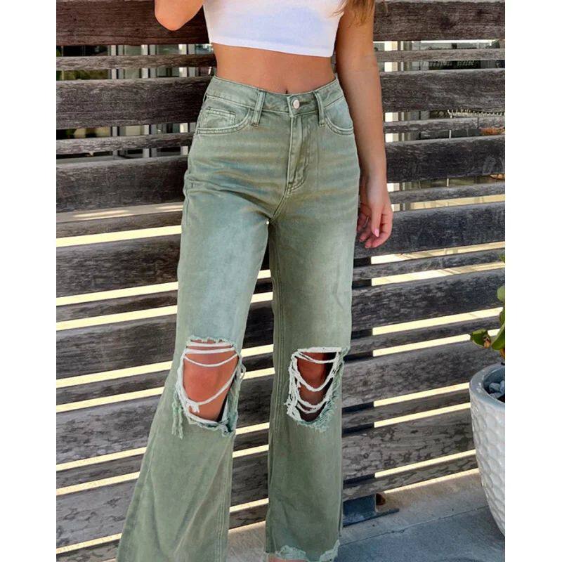 Style Women Loose and Straight American Ripped European