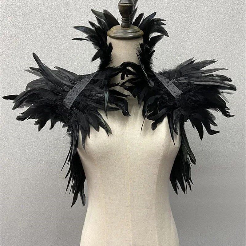 Shawl For Women Natural Black Shrugs Cosplay Hallowe Feather