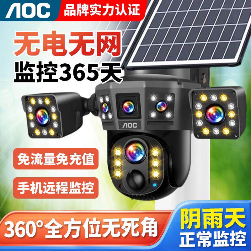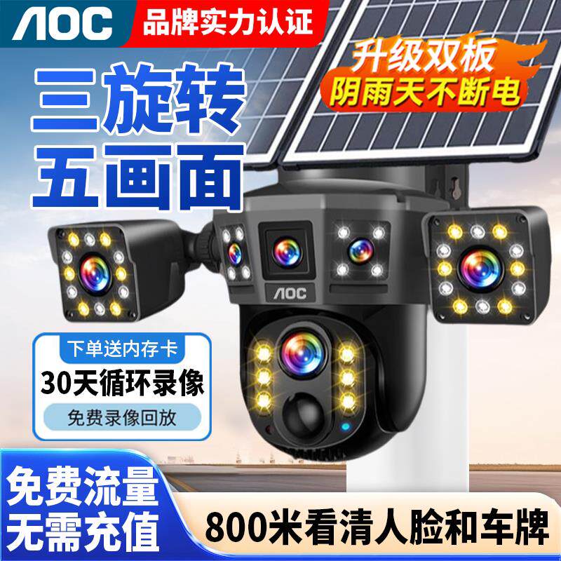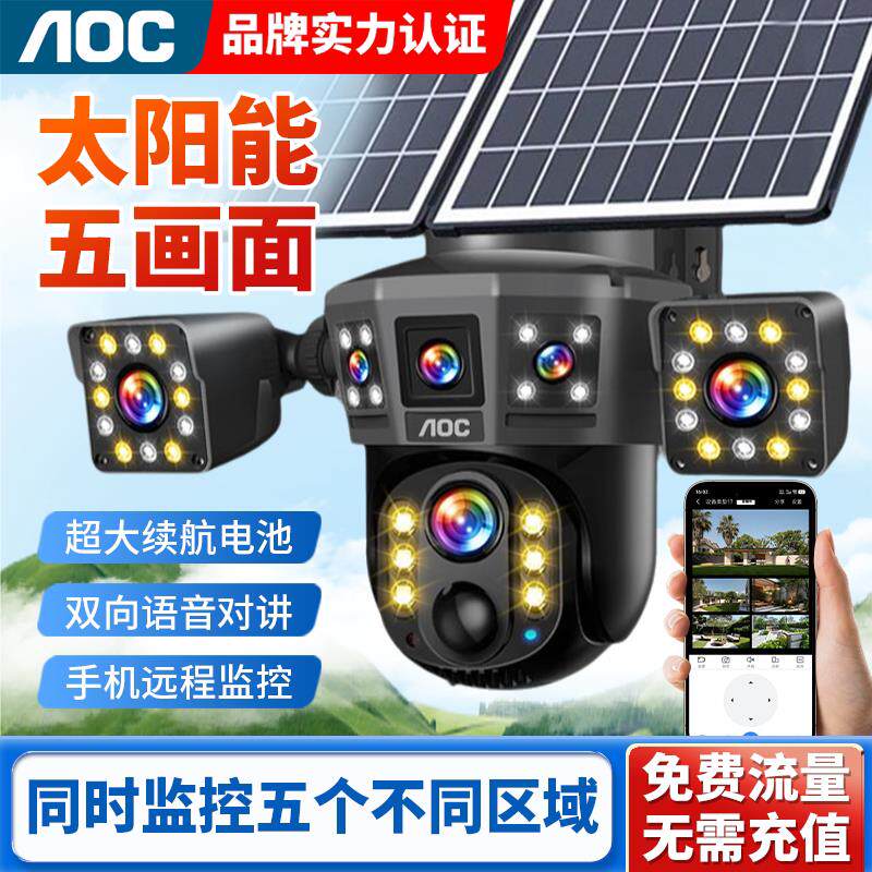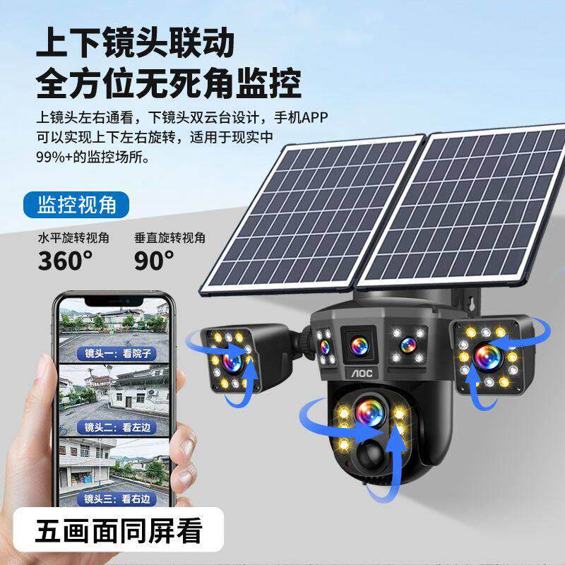 AOC免充值五画面太阳能AI监控摄像头4g超高清手机远程360度全景