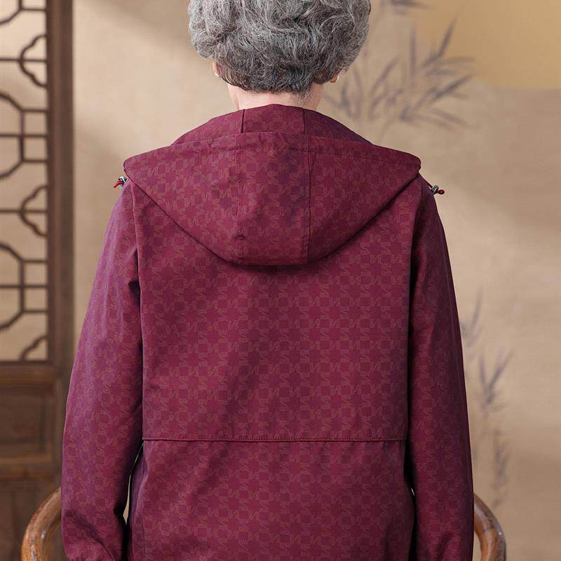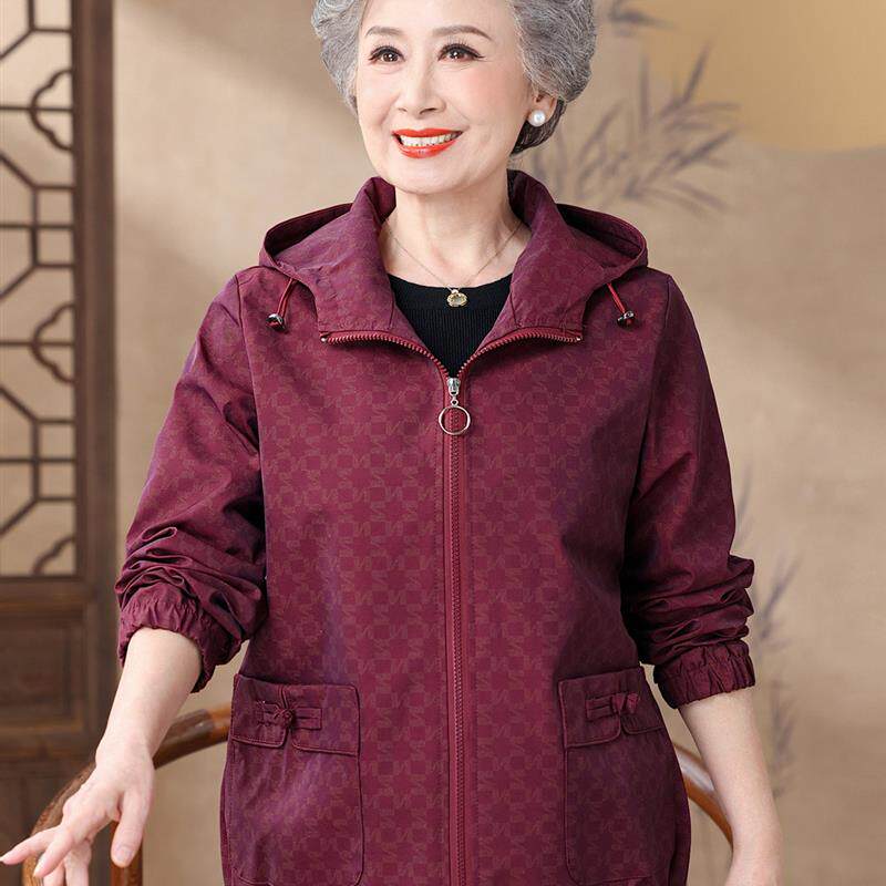 洋气中老年女春秋连帽上衣冲锋衣奶奶夹克衫 妈妈秋装 外套2025新款