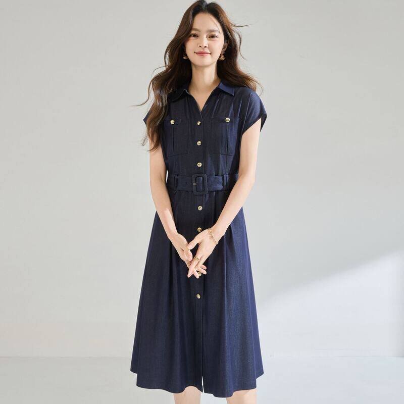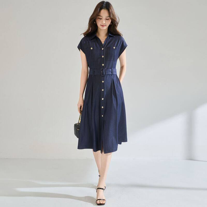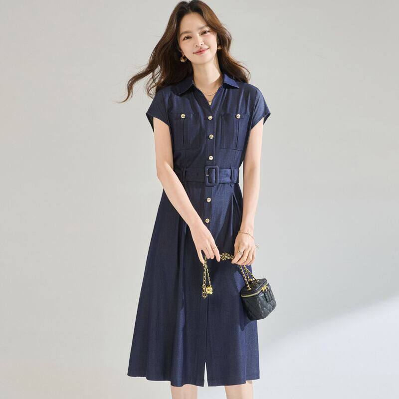 2026夏季 简约时髦收腰立体剪裁高级感仿牛仔通勤连衣裙 新款