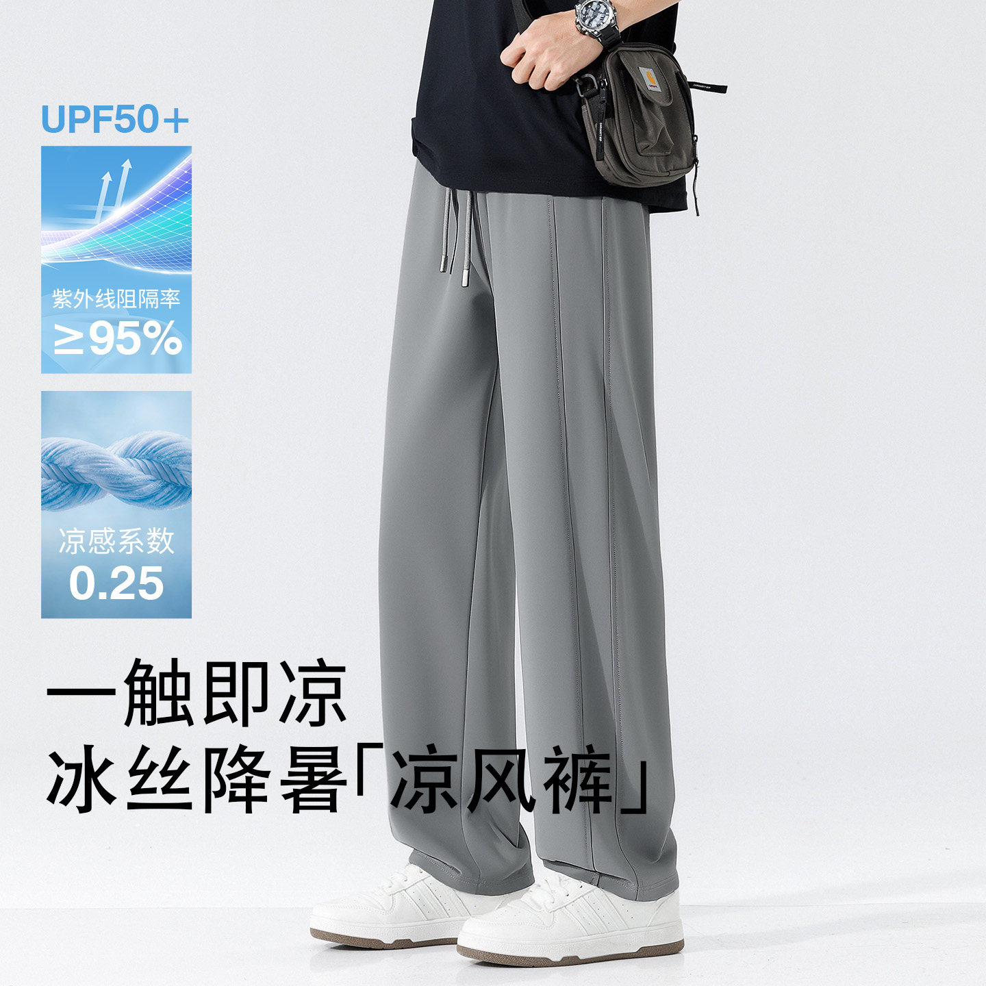 潮流青年拼接直筒裤 班尼路速干休闲裤 凉感透气九分裤 夏季 子A 男款