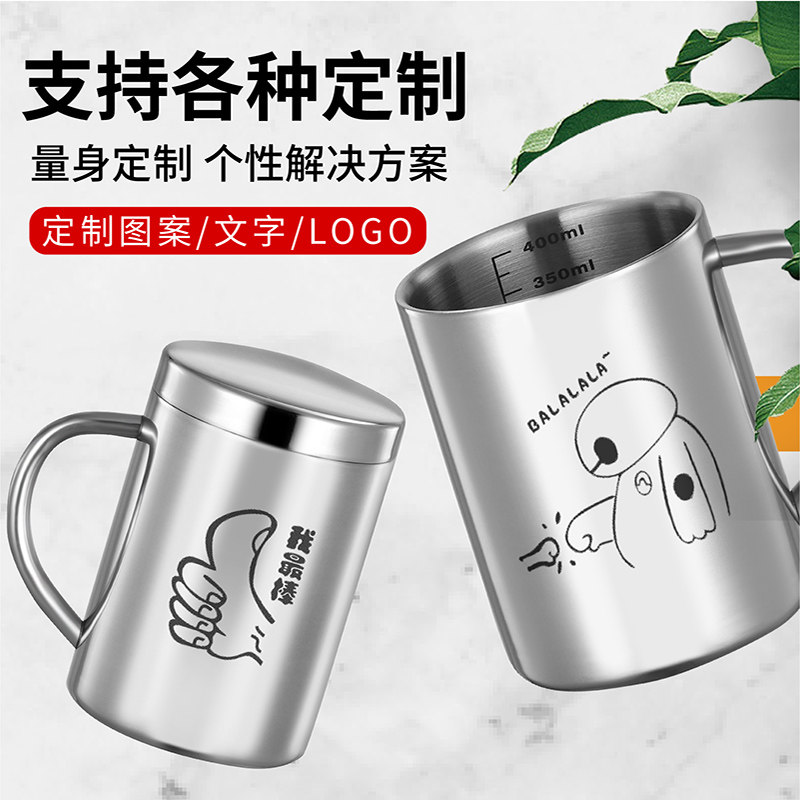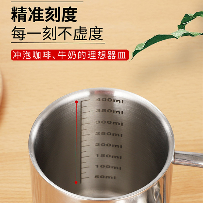 304不锈钢水杯家用幼儿园双层儿童盖宝宝杯子喝牛奶防带刻度摔带