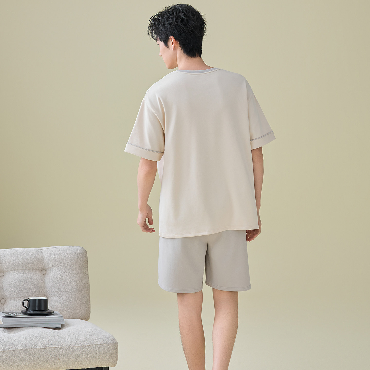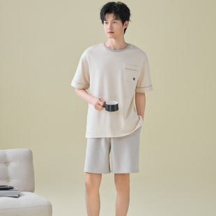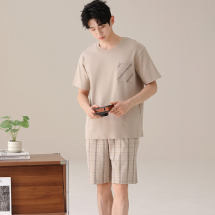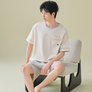 夏季 纯棉短袖 短裤 薄款 男士 睡衣套装 凉感可外穿家居服WR5133