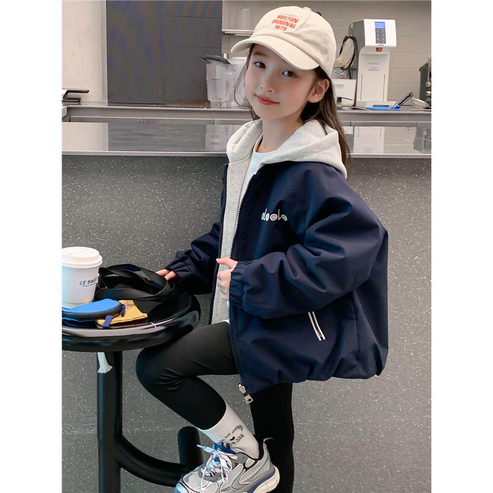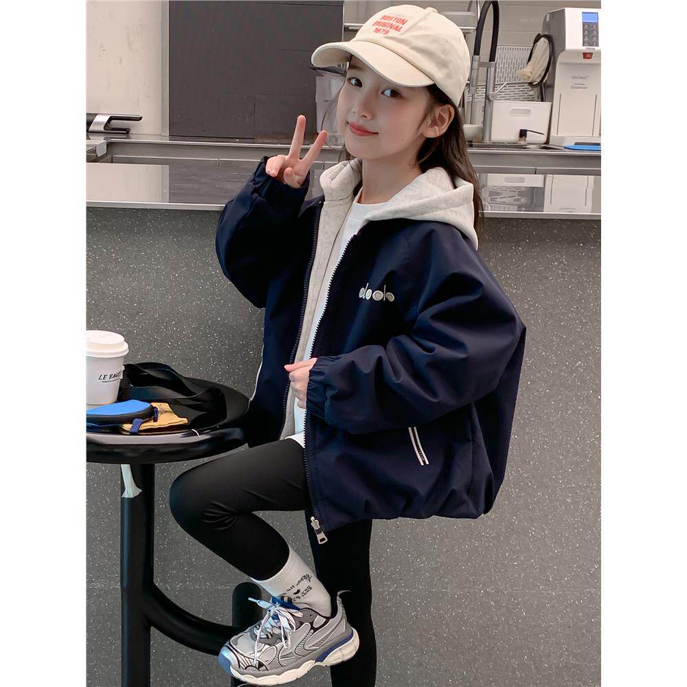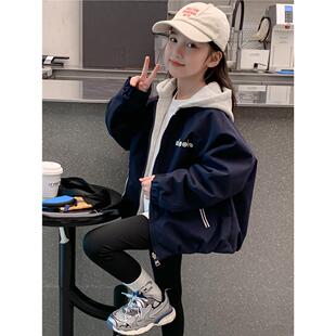 两面穿加绒加厚字母夹克上衣 儿童女孩秋冬季 女童秋装 外套2025新款