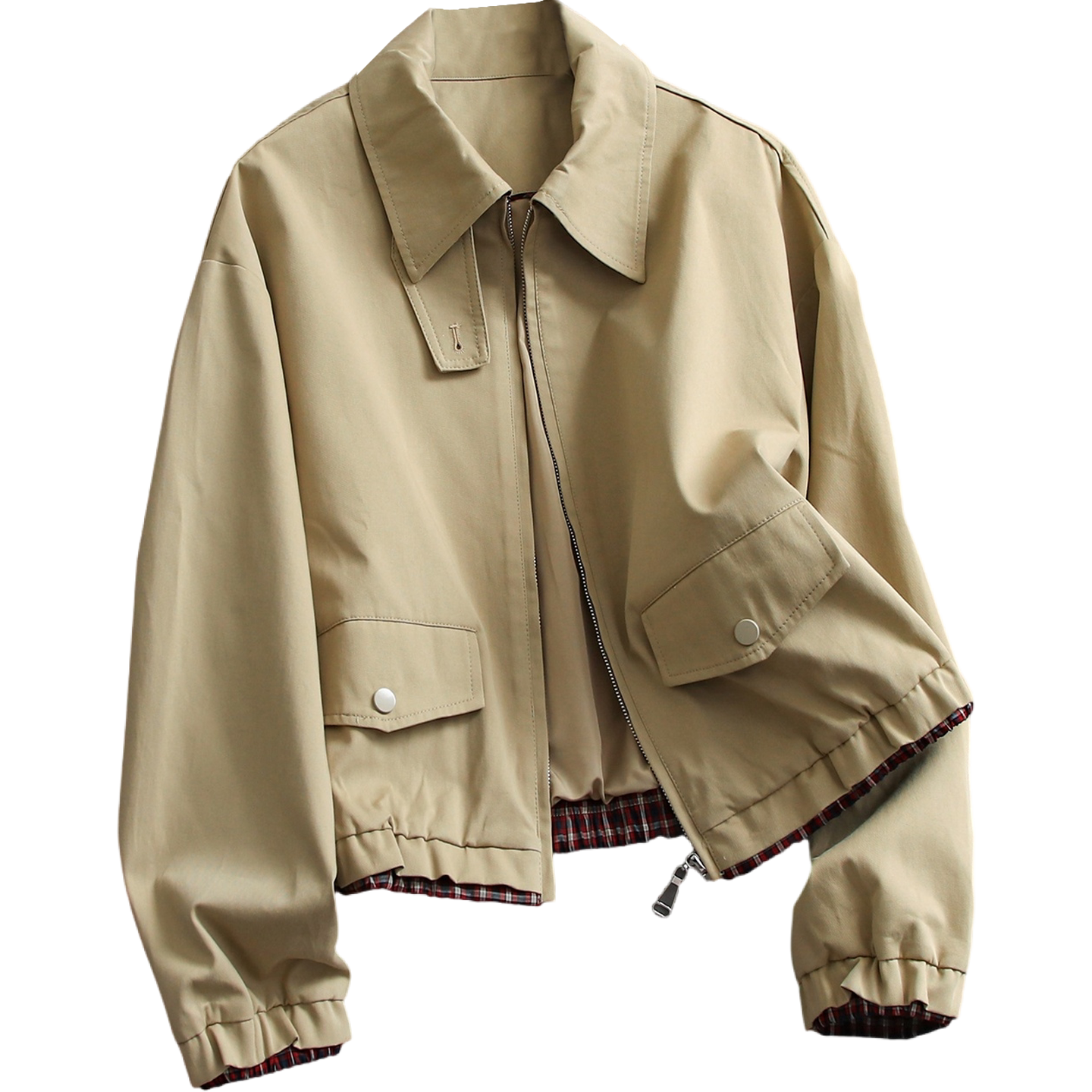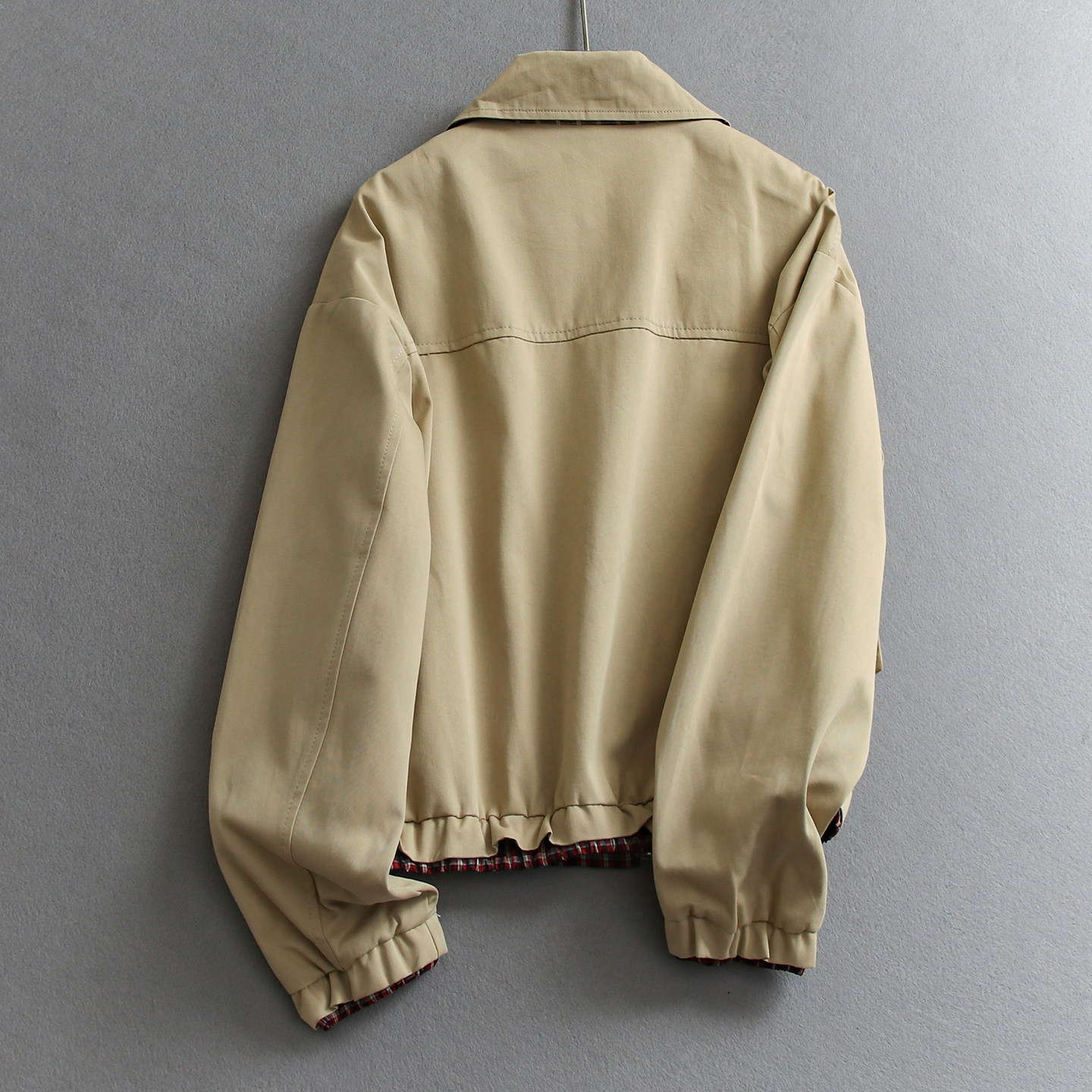 夹克风衣E127 女装 显瘦遮肉撞色格纹拼接松紧下摆翻领工装 外套长袖