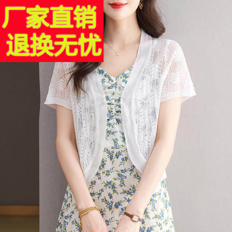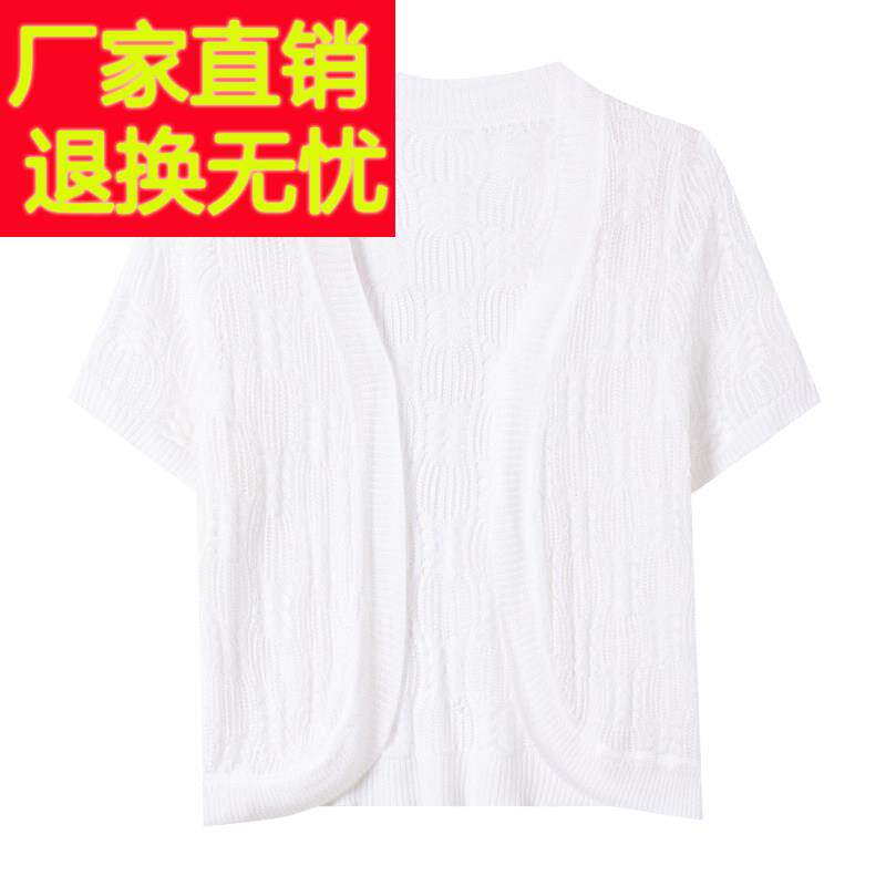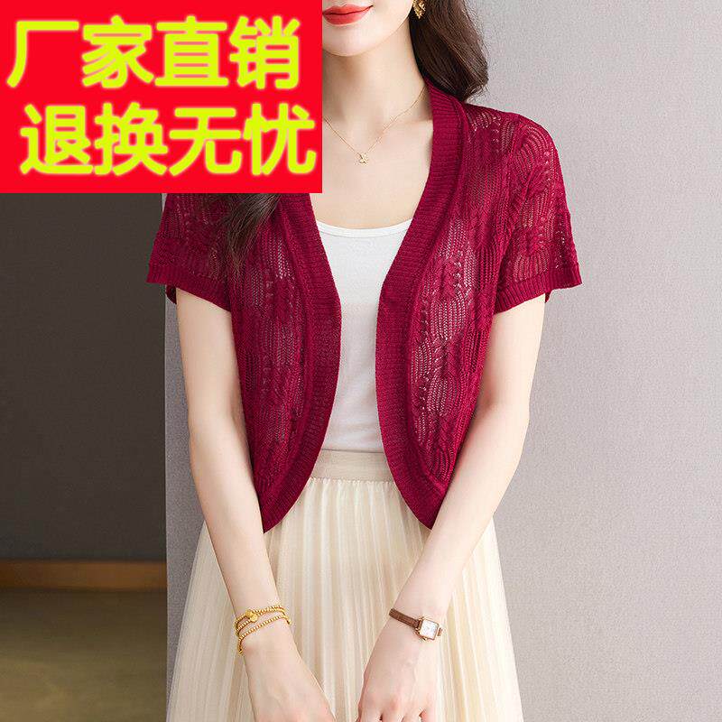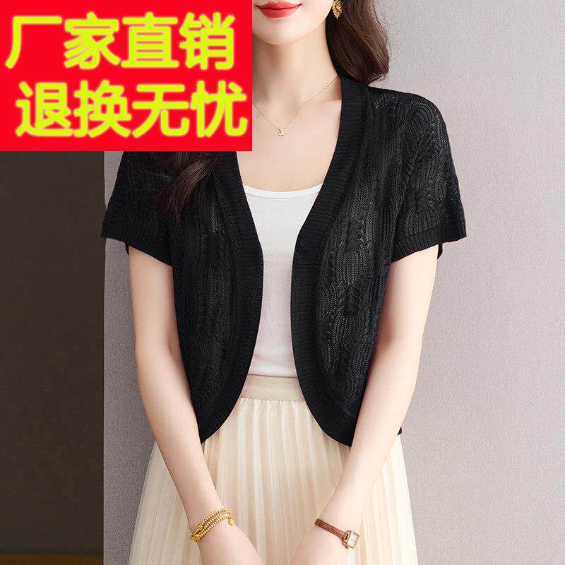 超短款 妈妈装 女开衫 薄镂空针织衫 小坎肩外套配裙子披肩 桑蚕丝夏季