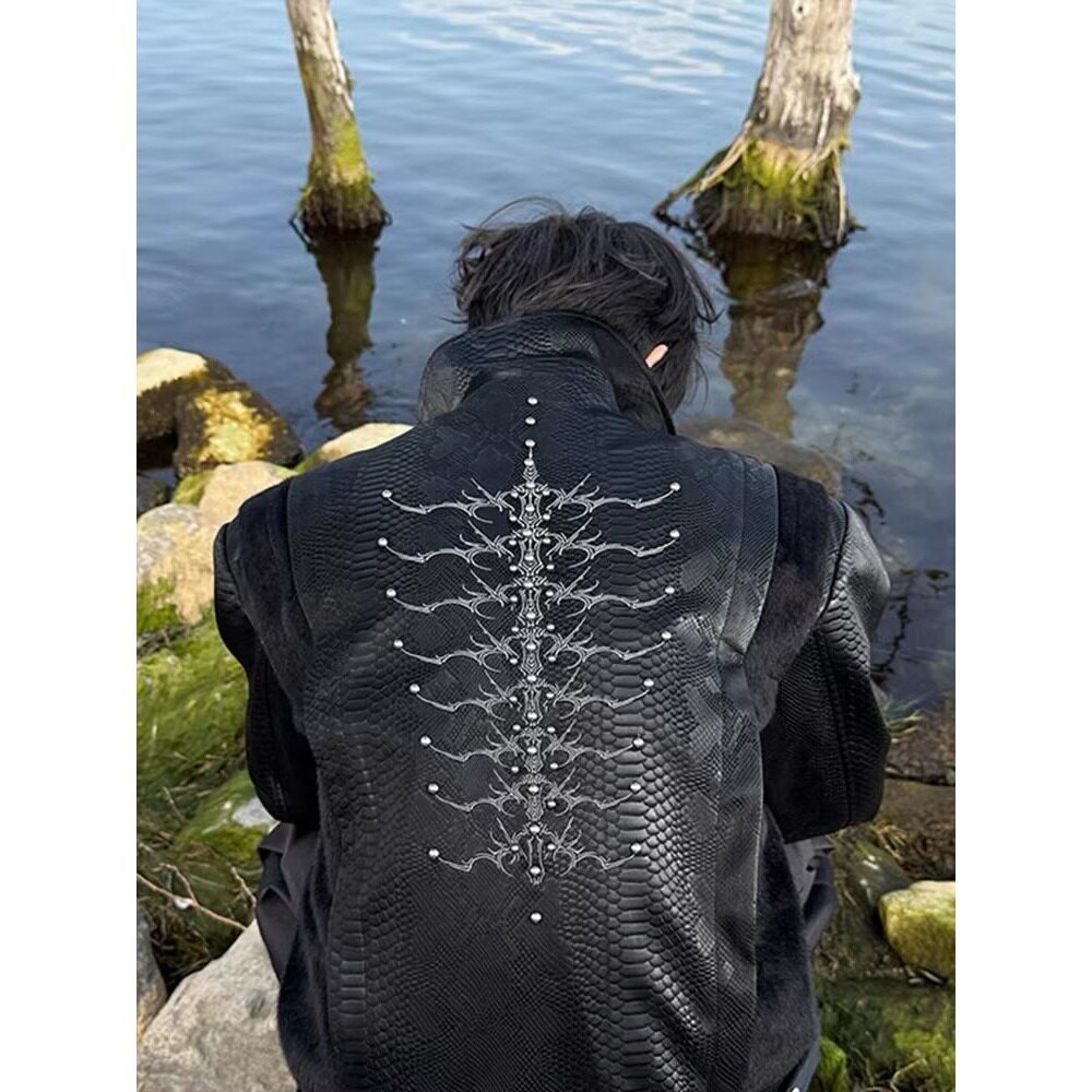 气质潮流百搭原宿新款 NB慵懒流行时尚 蛇皮纹刺绣铆钉 Bcfauae New
