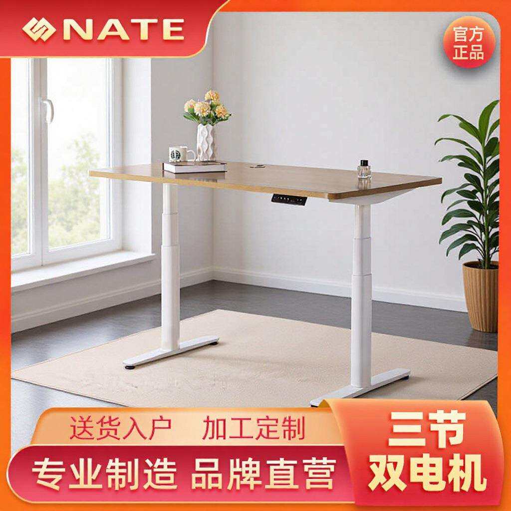 实木电动升降桌电脑桌学习桌书桌家用办公桌电竞桌子可升降工作台