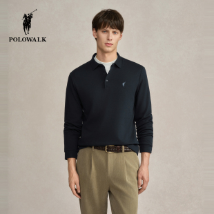 商务休闲翻领加绒上衣打底衫 POLOWALK男式 新品 T恤2025冬季 男 长袖