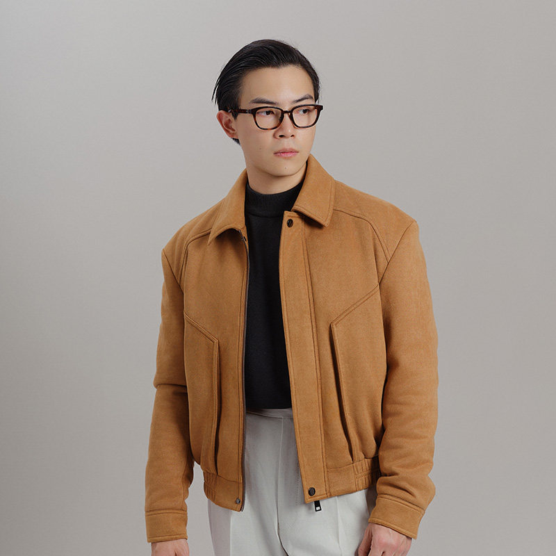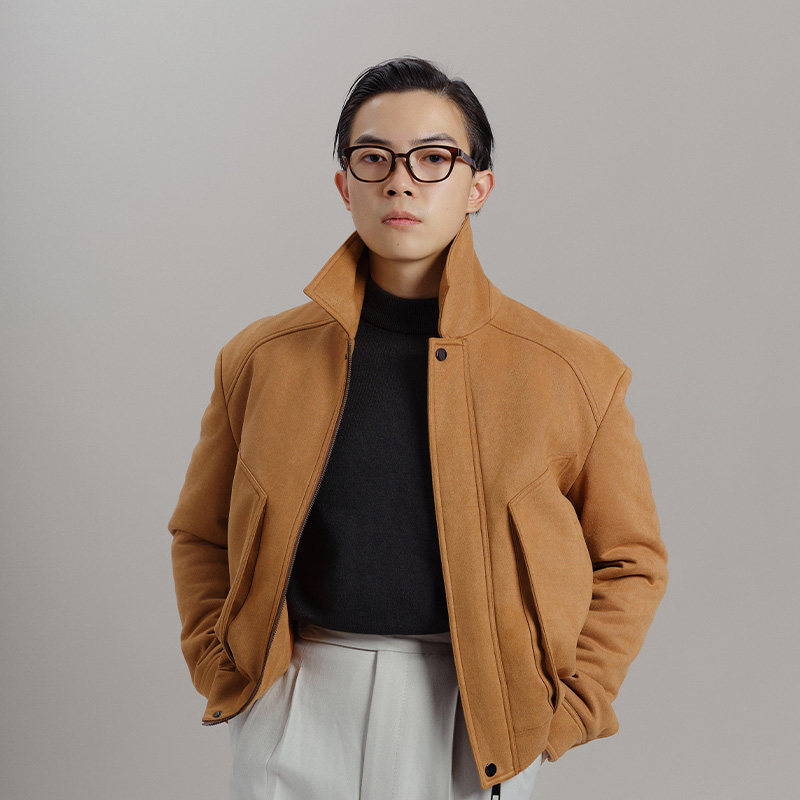 秋冬翻领轻薄棉衣外套男款 平圆方中2025年新款 麂皮绒绗棉夹克