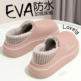 室内家居厚底防滑保暖毛绒防水棉鞋 冬季 女士2026新款 踩屎感棉拖鞋