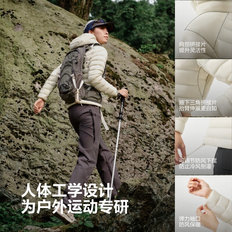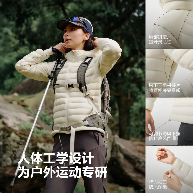 波司登奥莱女舒适简约百搭轻量排骨条轻薄连帽羽绒服外套 鹅绒