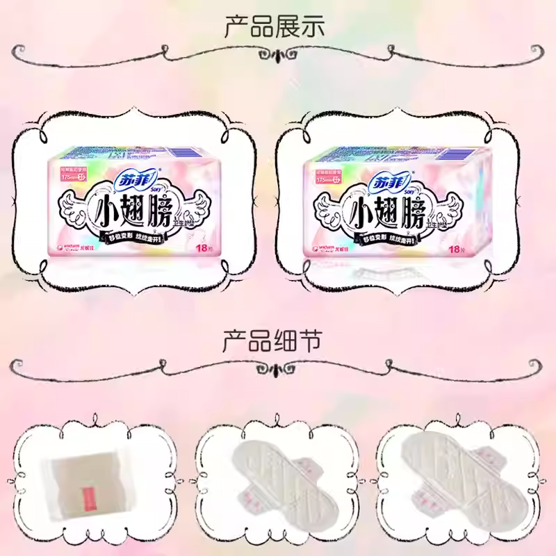苏菲小翅膀护垫带护翼不移位量少日用108片 详情领券减10元