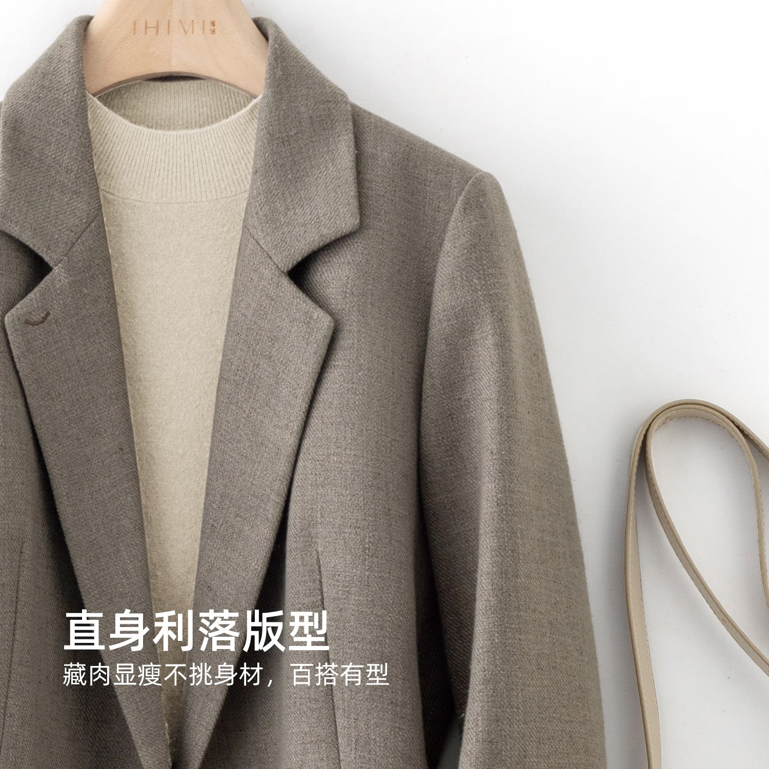 IHIMI海谧高级感亚麻呢料加厚西装 简约老钱风职场上衣 外套女秋季