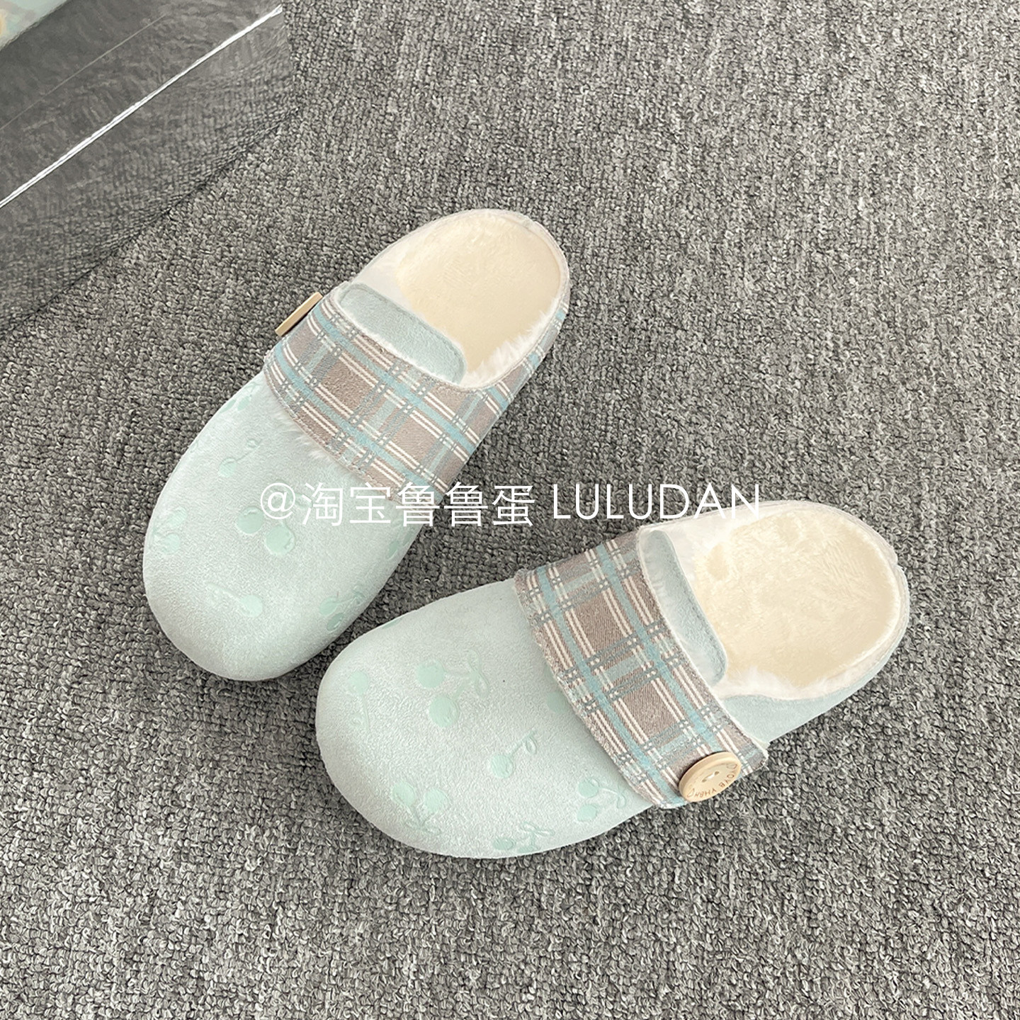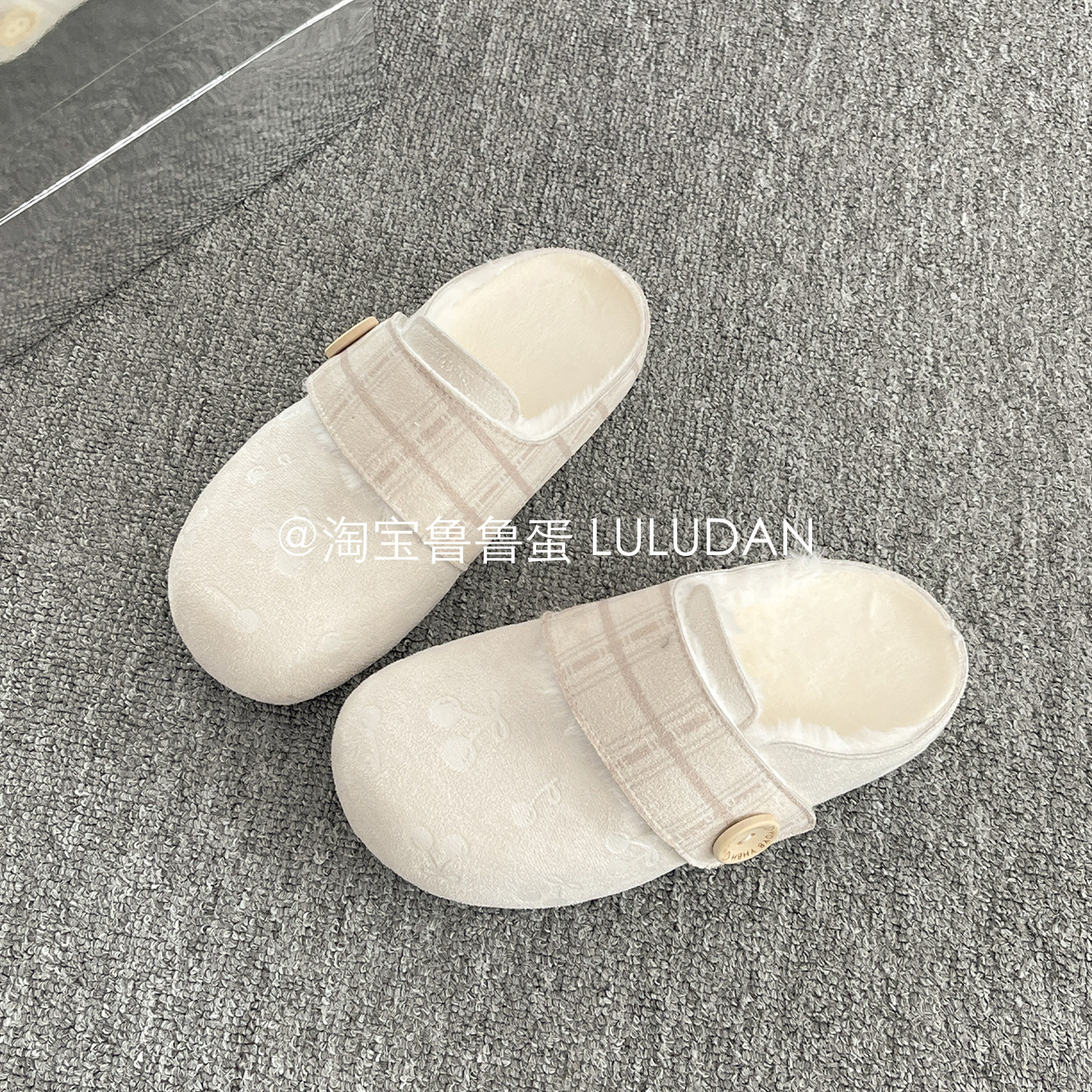 66001 秋冬加毛包头半拖鞋 DevoLife软木拖鞋 女加绒保暖休闲毛毛鞋
