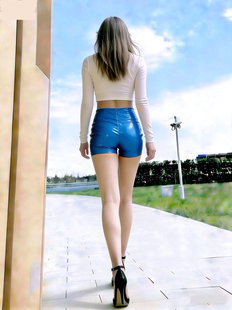 紧身弹力镜面PU光亮高腰显瘦亮皮性感 女外穿薄款 短皮裤 白色皮短裤