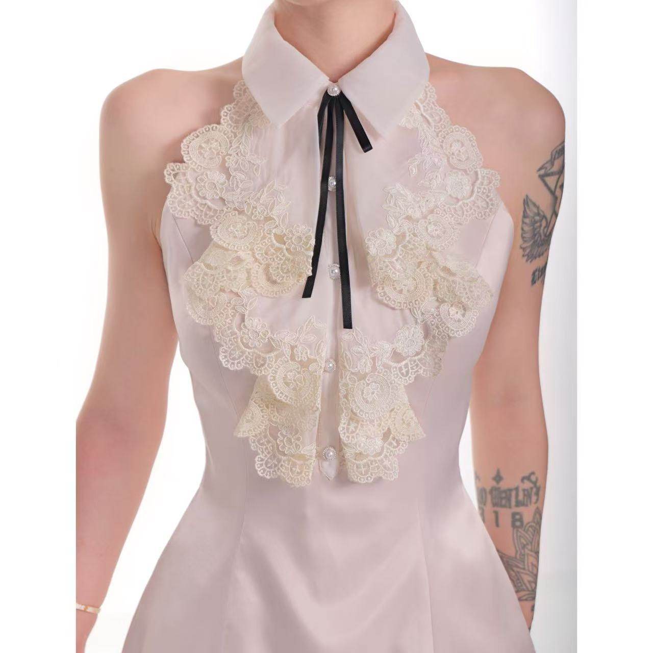 挂脖连衣裙新款 龙怼怼推荐 纯欲蕾丝无袖 法式 收腰包臀 许我耀眼