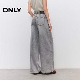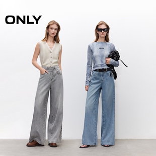 新款 ONLY2026春季 复古铆钉提臀剪裁高腰宽松直筒牛仔裤 莱赛尔