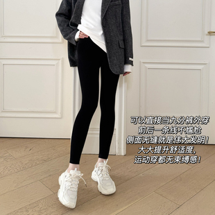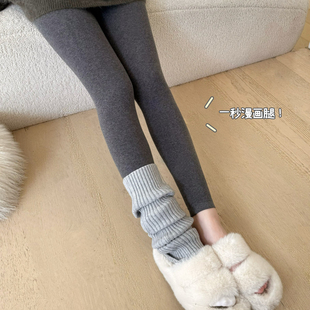袜女加绒加厚秋冬 米图无缝高弹分段微压打底连裤 黑标金棉九分