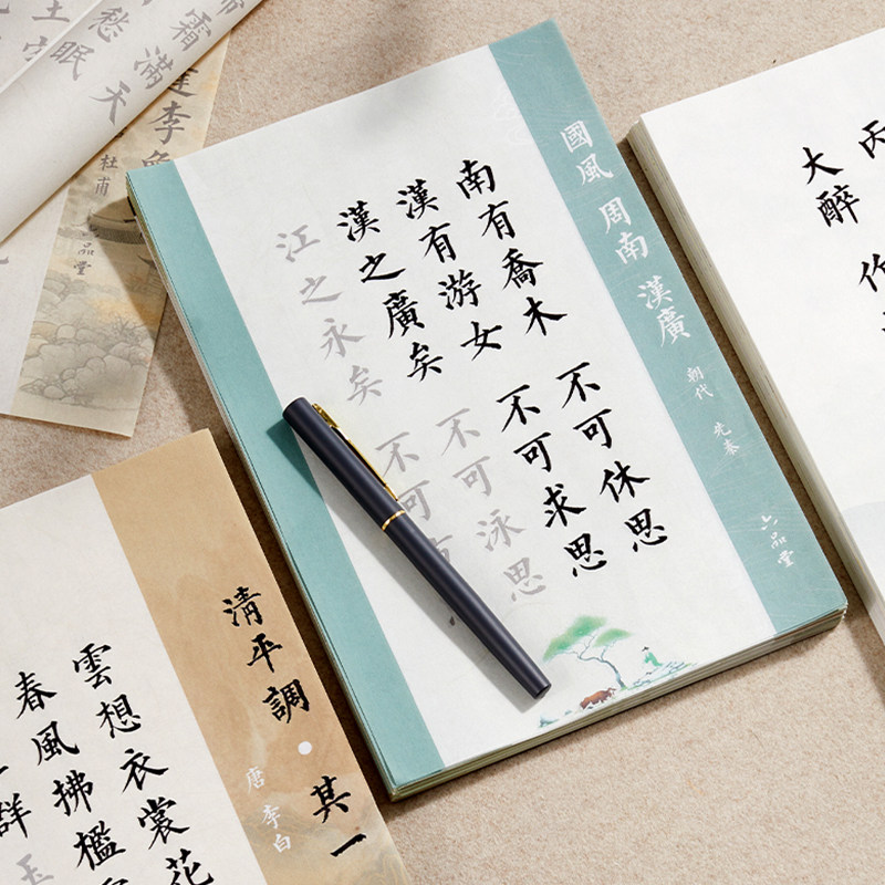 繁体字小楷毛笔练字帖套装 抄写本临摹楷书书法纸成年人宣纸女生练毛笔字描红纸 唐诗宋词精选诗经描红练字专用初学者入门高颜值套装
