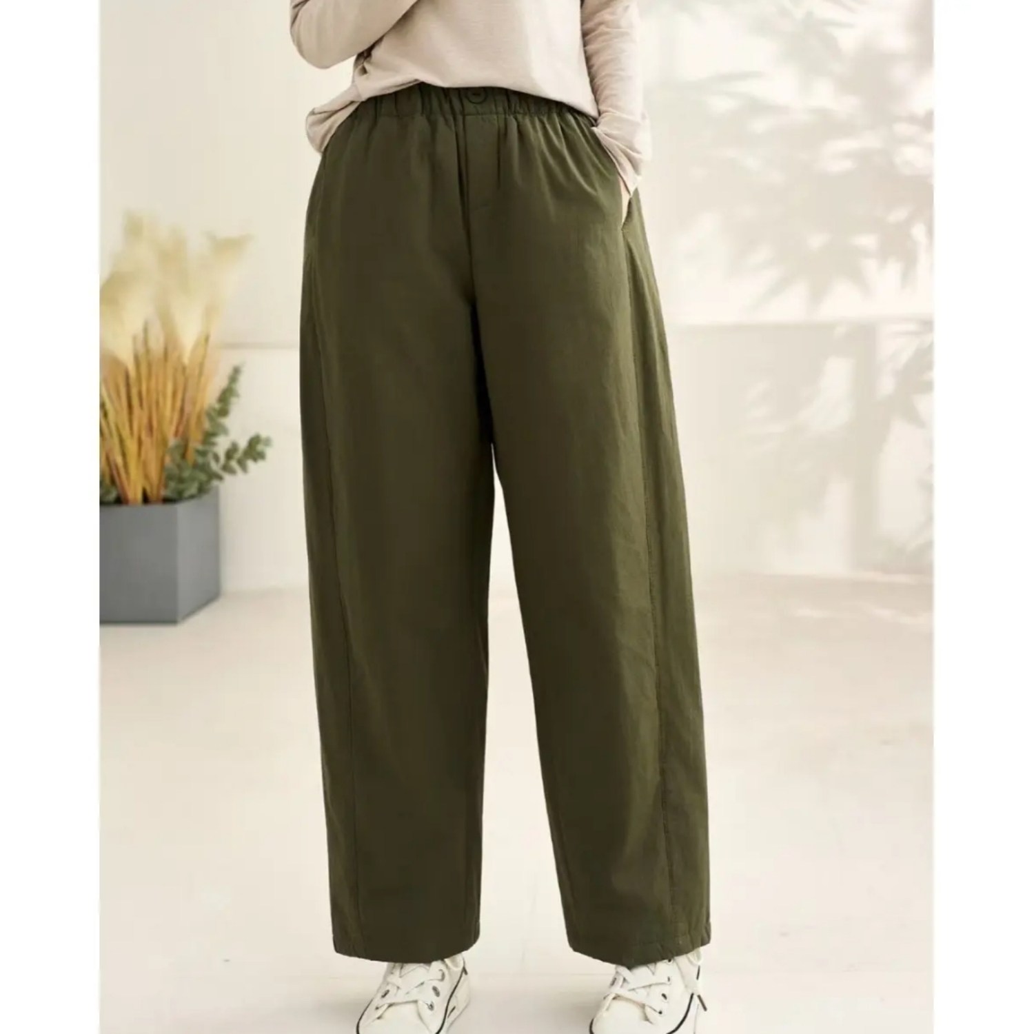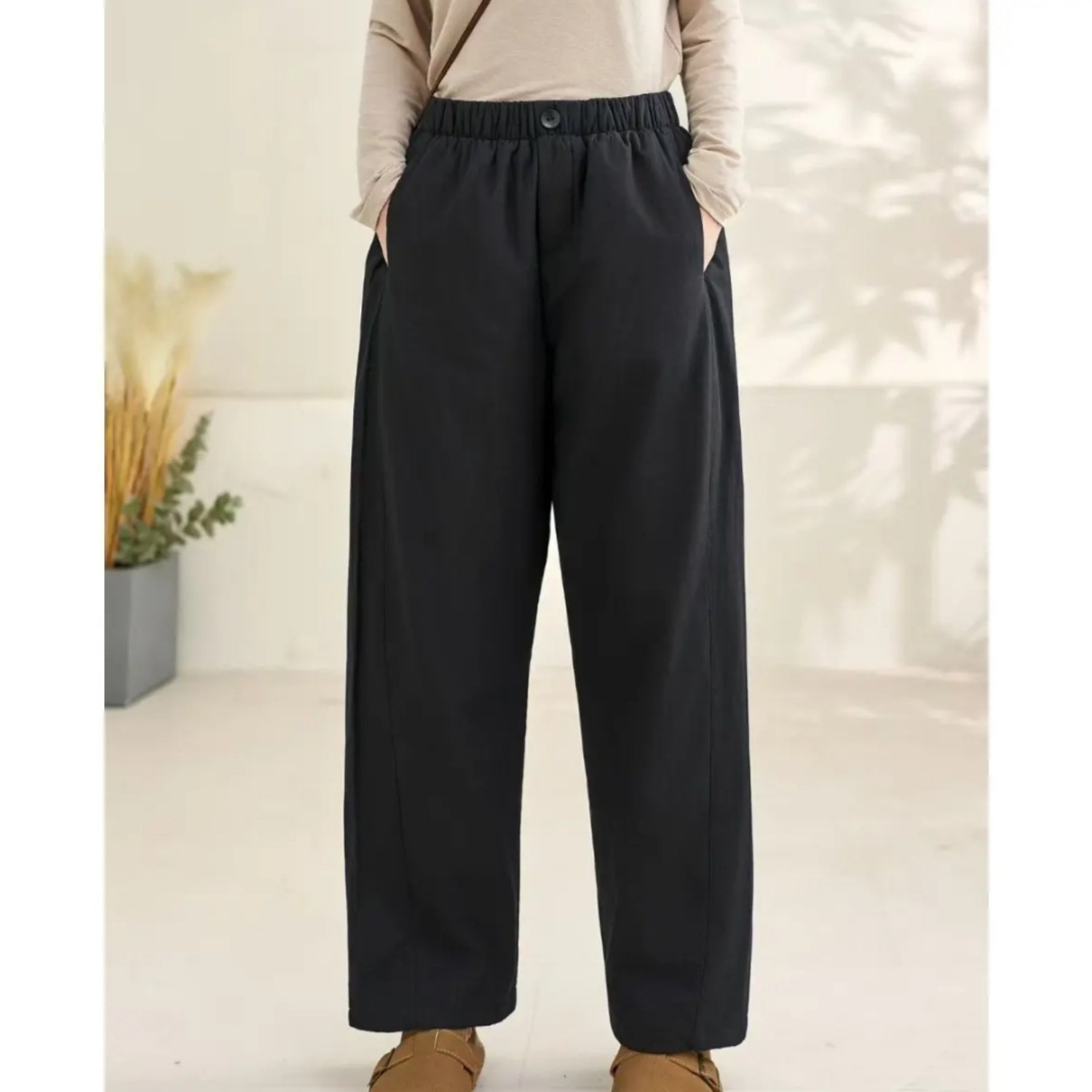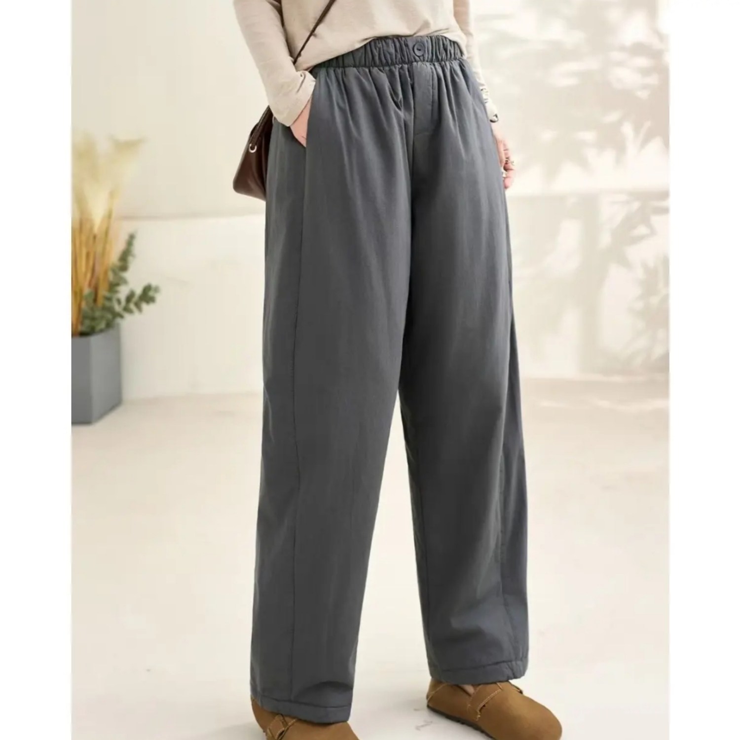 2025秋冬纯棉松紧腰夹棉纯色百搭保暖宽松直筒棉裤 棉裤 夹棉