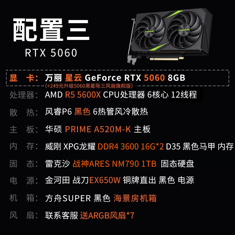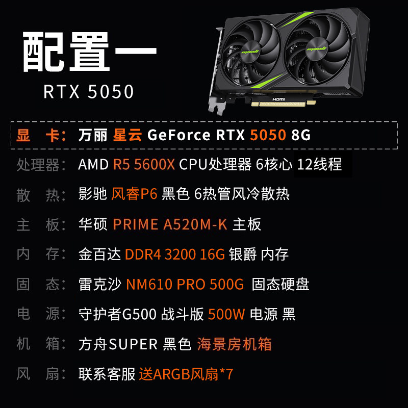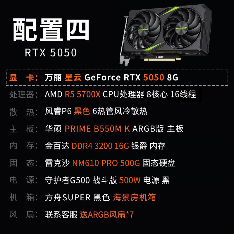 5700X 5050 主机DIY整机渲染AI游戏台式 AMD锐龙R5 机三角洲黑神话 电脑台式 5600X 星云组装 万丽显卡主机 5060