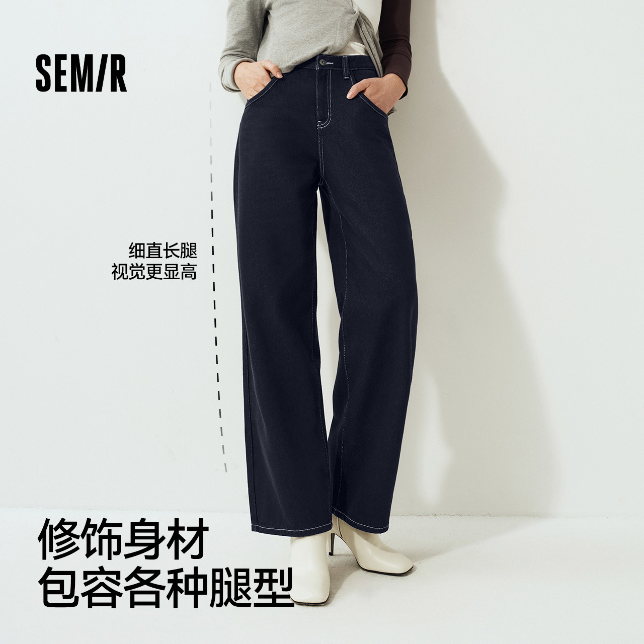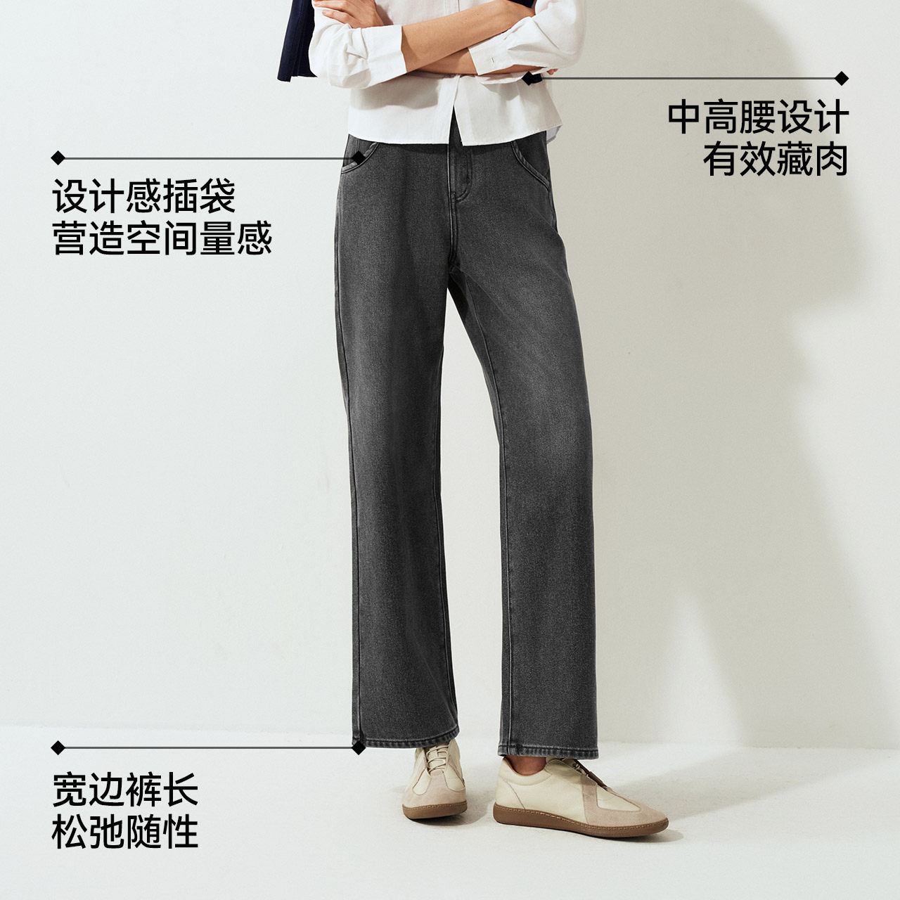 显腿长拖地裤 森马牛仔裤 2025新款 舒适港风冬季 ins潮 女抓毛阔腿裤