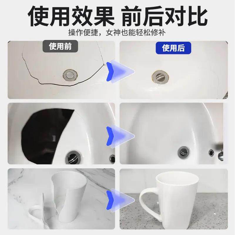陶瓷修补胶釉面强力瓷砖裂缝搪瓷锅洗手盆修复膏防水粘浴缸马桶盖蹲便器瓷器面盆地砖无痕修补粘合陶瓷胶水