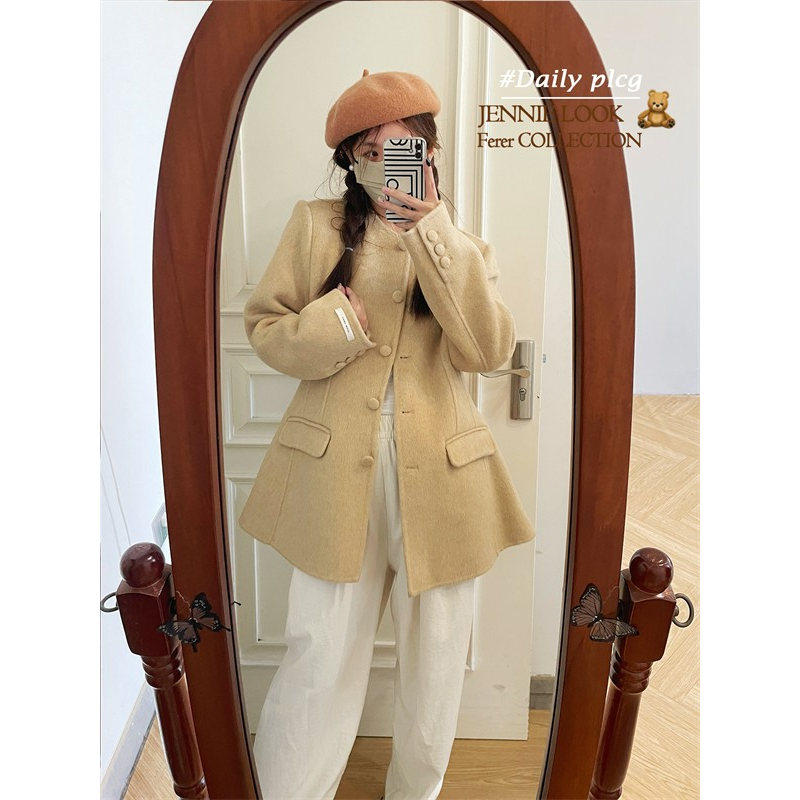 2025新款 莓喵jk牛角扣大衣外套女毛呢长款 呢子羊毛绒秋冬加厚女款