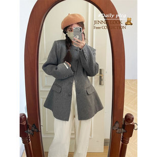 慵懒风双面羊毛大衣女中长款 灰色毛呢外套高级感A