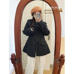 西装 微胖mm秋冬宽松正肩长短款 毛呢大衣外套 百分百女装 DM100大码