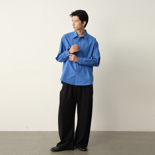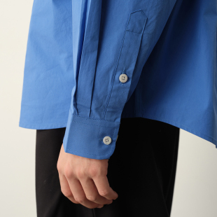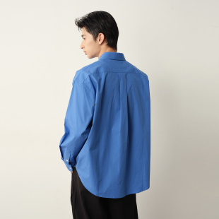 Vavu纯棉萨克斯蓝碳素水洗长袖 贴袋休闲松弛感简约百搭衬衣 衬衫