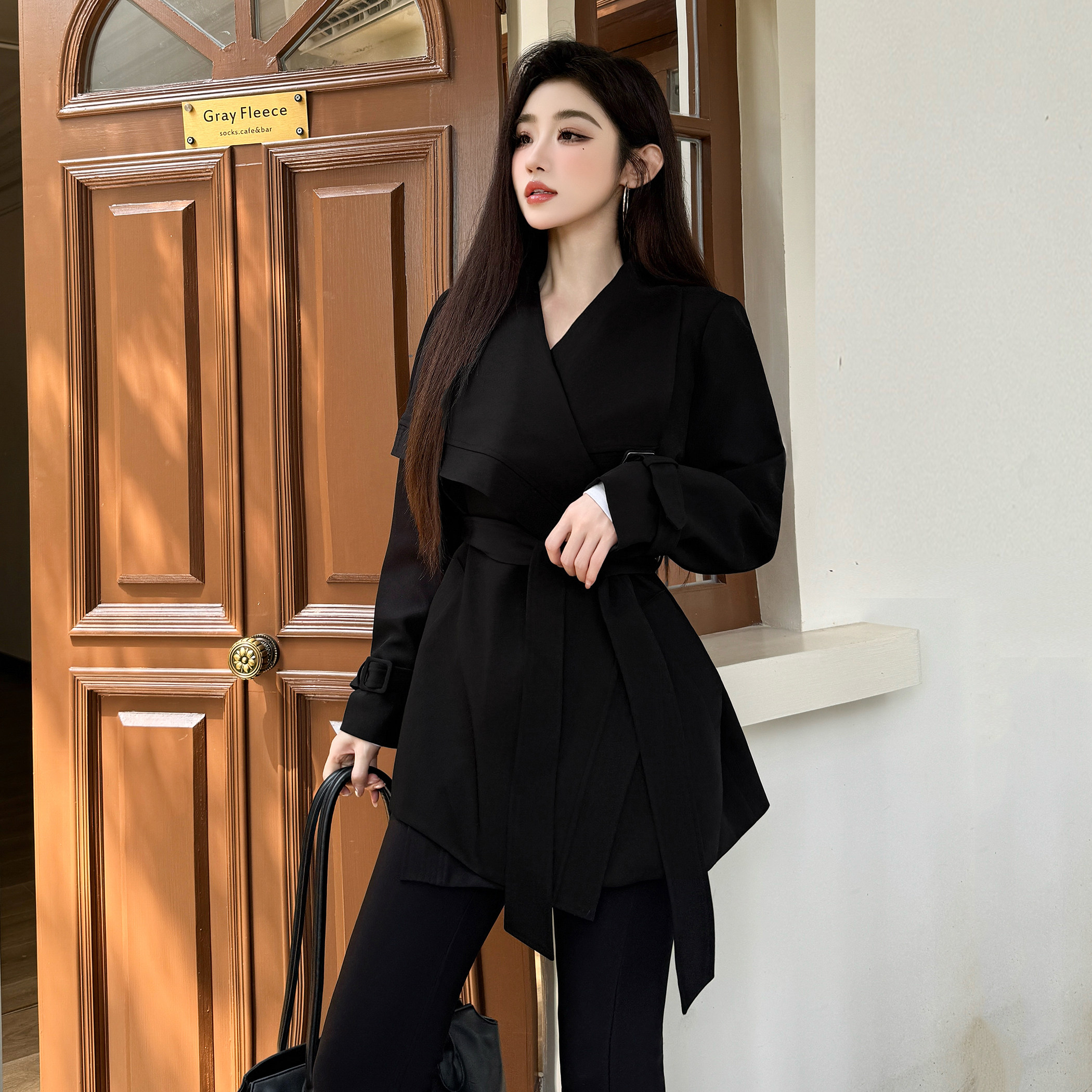 浅布调春季 大翻领风衣外套 好看高级感宽松不规则绑带老钱风中长款
