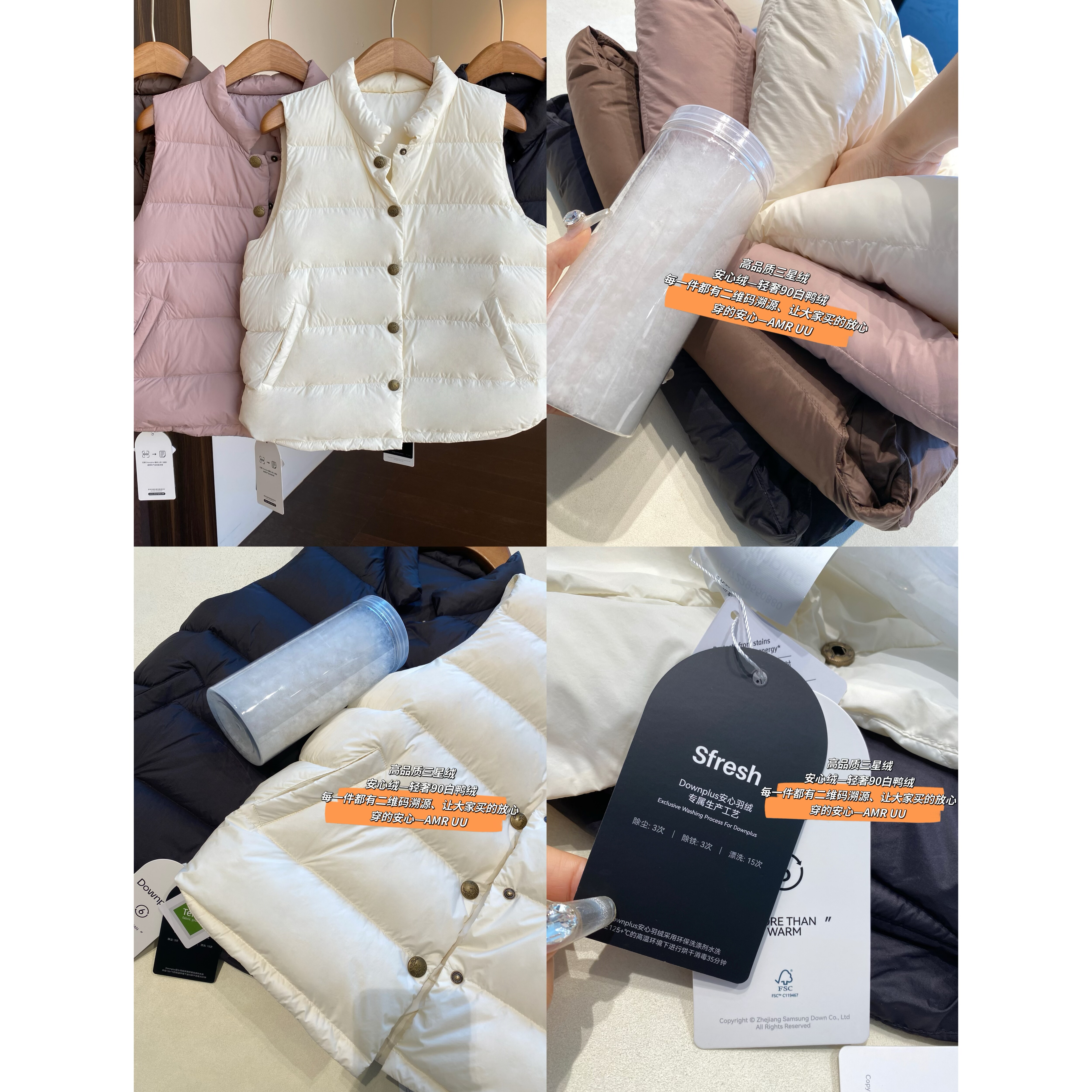 加厚保暖羽绒棉服无袖 Wassup Shark潮牌双面穿马甲男女情侣秋冬季