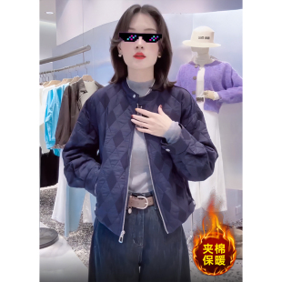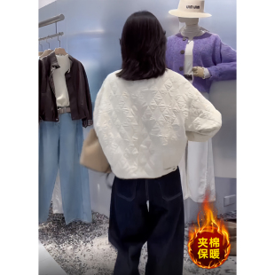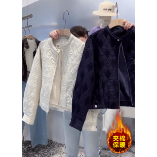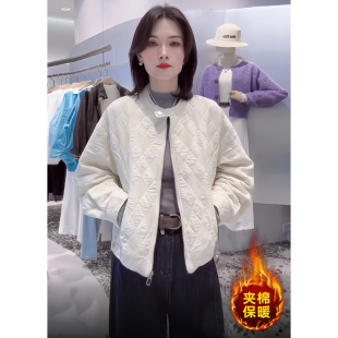 欧货高级感菱形格夹棉加厚外套女秋冬新款 休闲宽松棒球服上衣女潮