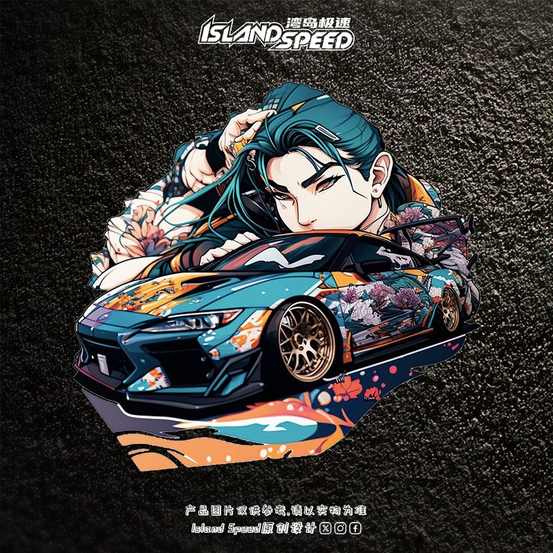 动漫风跑车贴画日式 涂鸦汽车车身划痕遮盖防水贴纸 风格