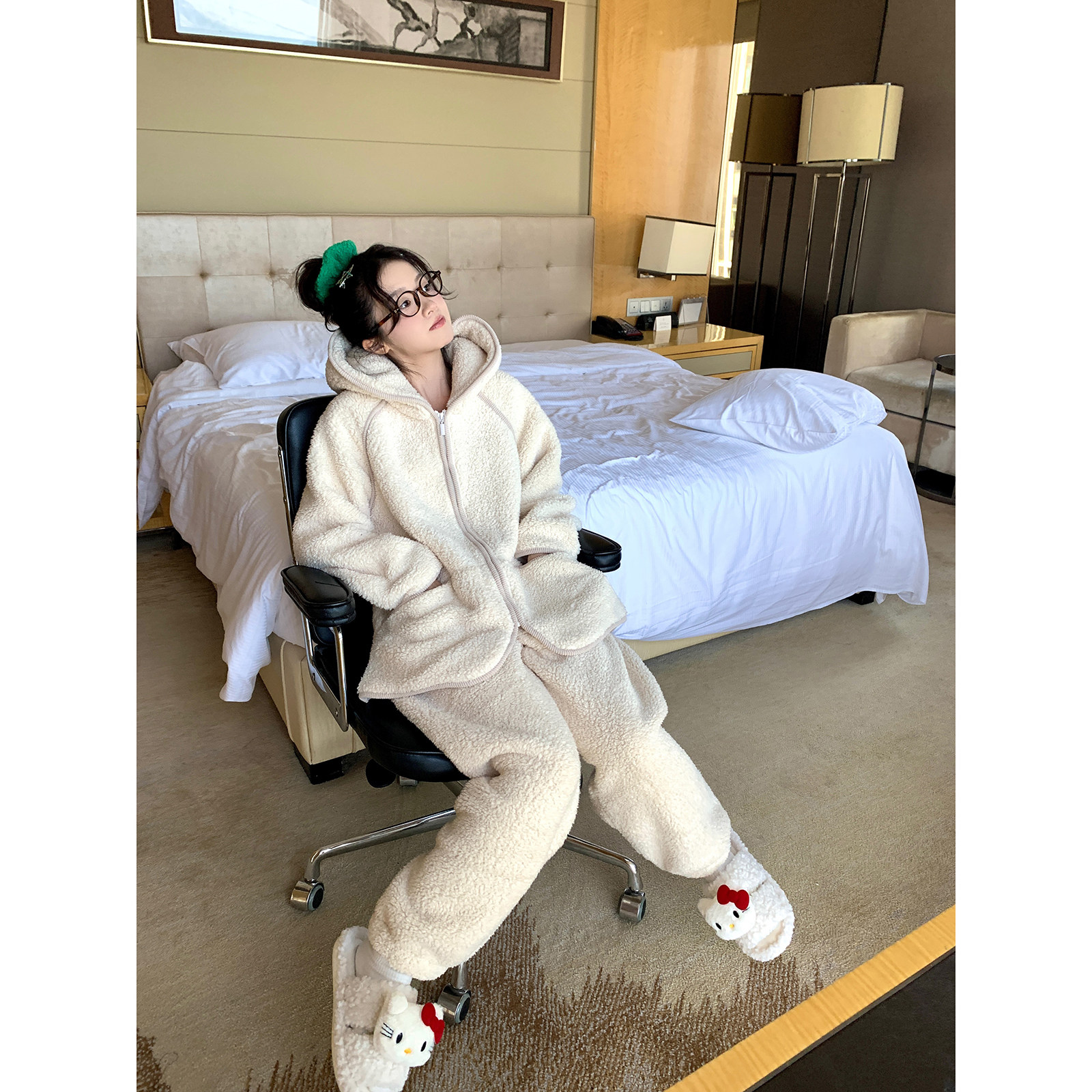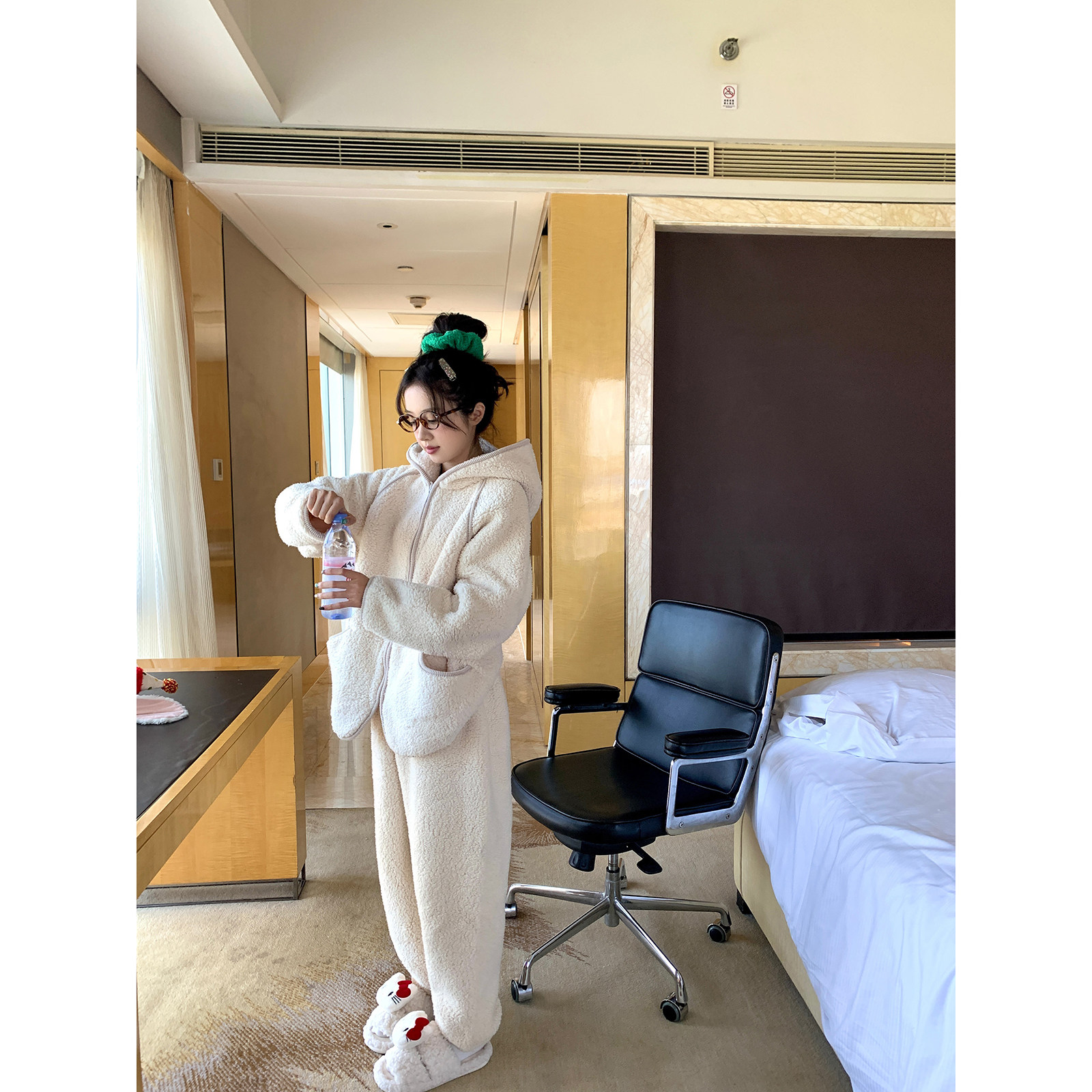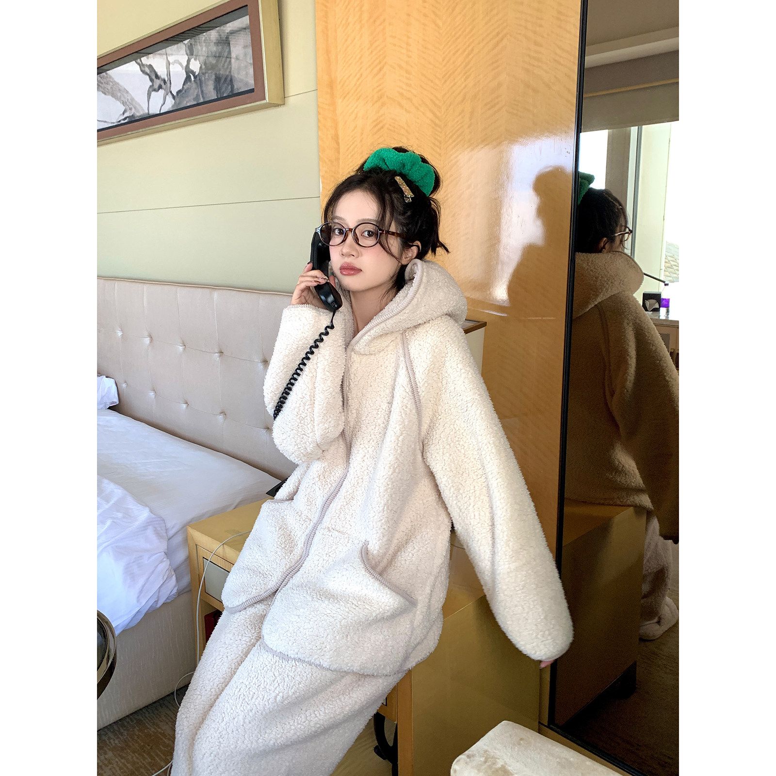 可外穿家居服套装 馨帮帮Homedress 珊瑚绒连帽睡衣女长袖 新款 冬季