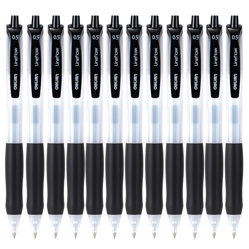 得力按动中性笔臻顺滑子弹头0.5mm刷题笔碳素水笔 全国26仓发货