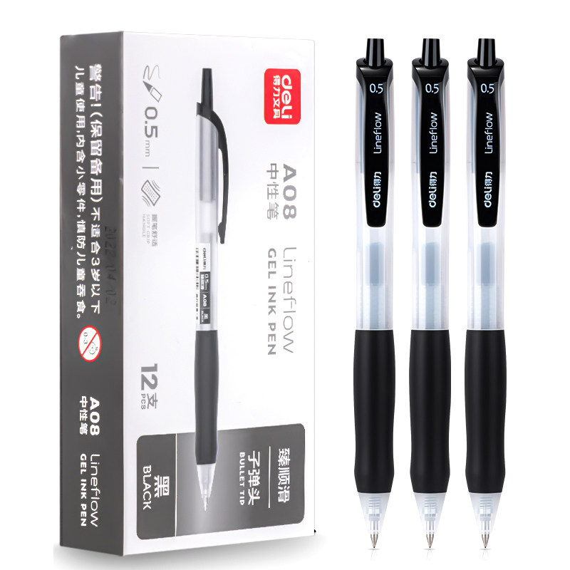 得力中性笔文具黑色笔0.5mm拔帽子弹头商务办公广告笔定制红笔学生用蓝色签字笔记账笔碳素笔圆珠笔水笔
