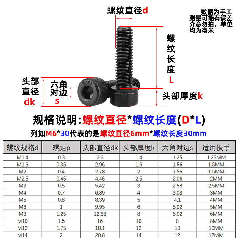 全牙12.9级内六角螺丝高强度杯头螺钉圆柱头螺栓M3M4M5M6M8M10M12