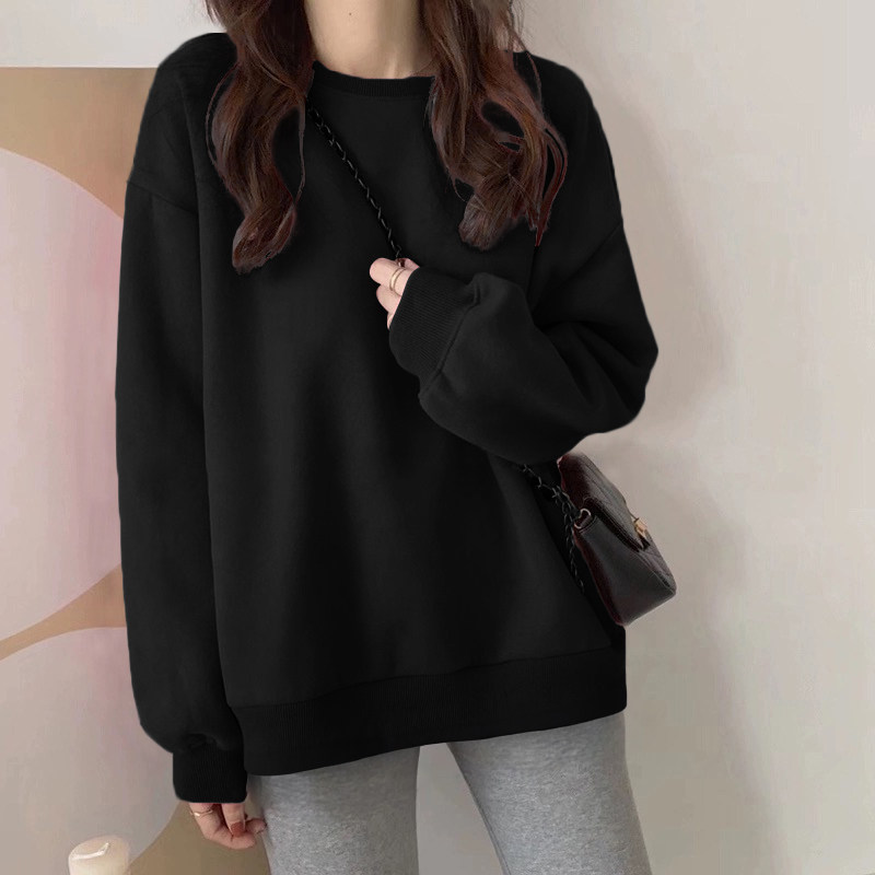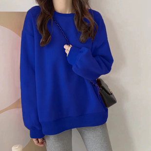 大码 香芋紫色圆领加厚加绒卫衣女新款 洋气秋冬季 时尚 上衣 2026爆款