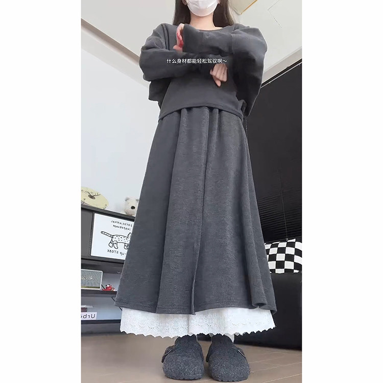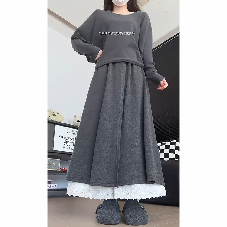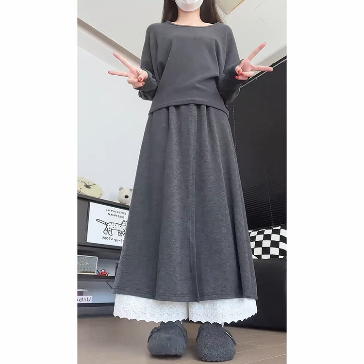 宽松显瘦休闲裤 灰色复古蕾丝花边裙裤 慵懒风时尚 2025新款 女秋冬季