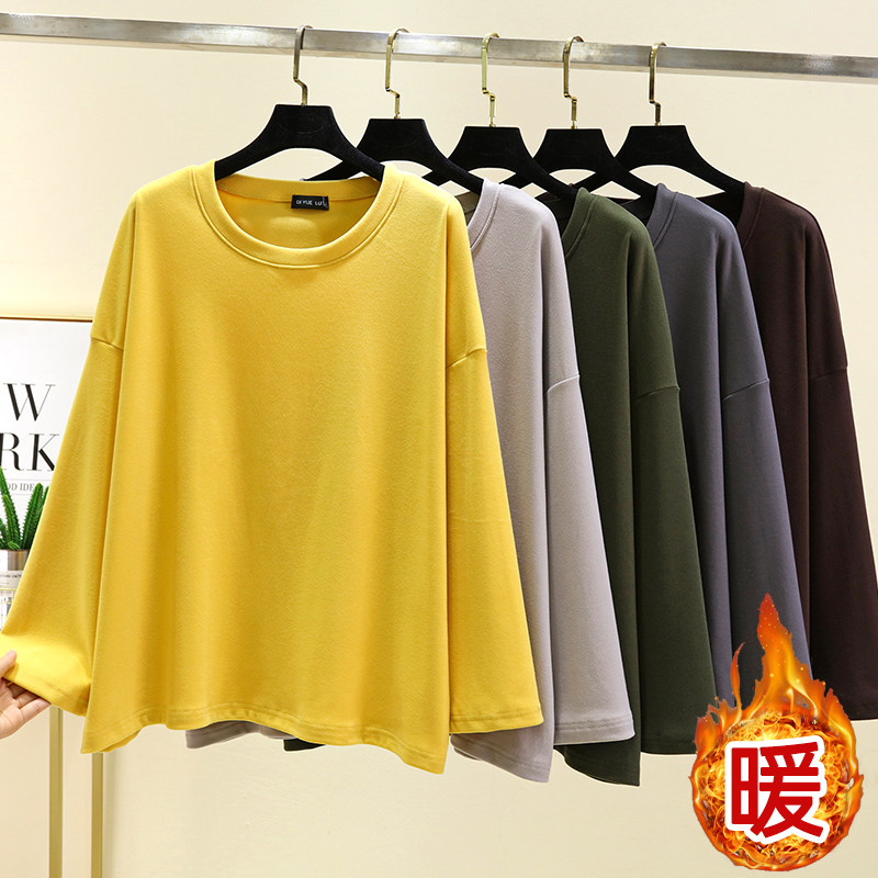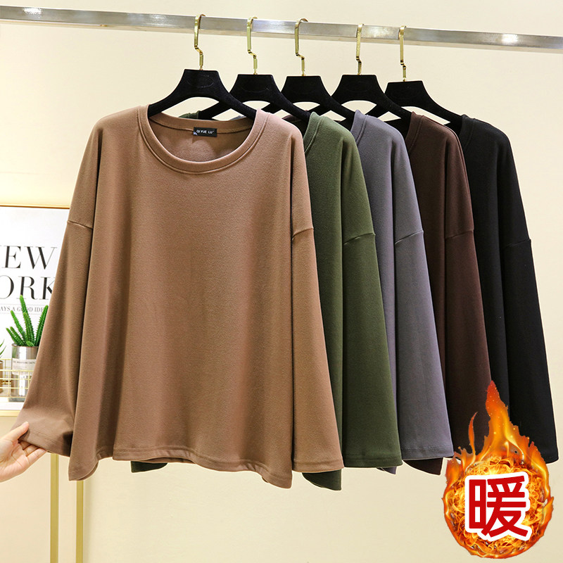 纯色睡衣上装 加绒保暖上衣休闲大码 T恤女冬季 德绒加肥宽松长袖