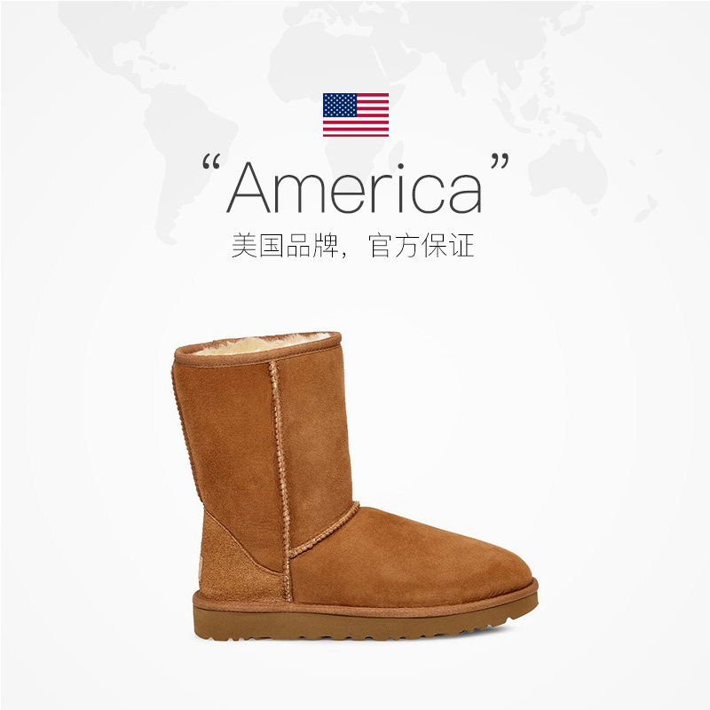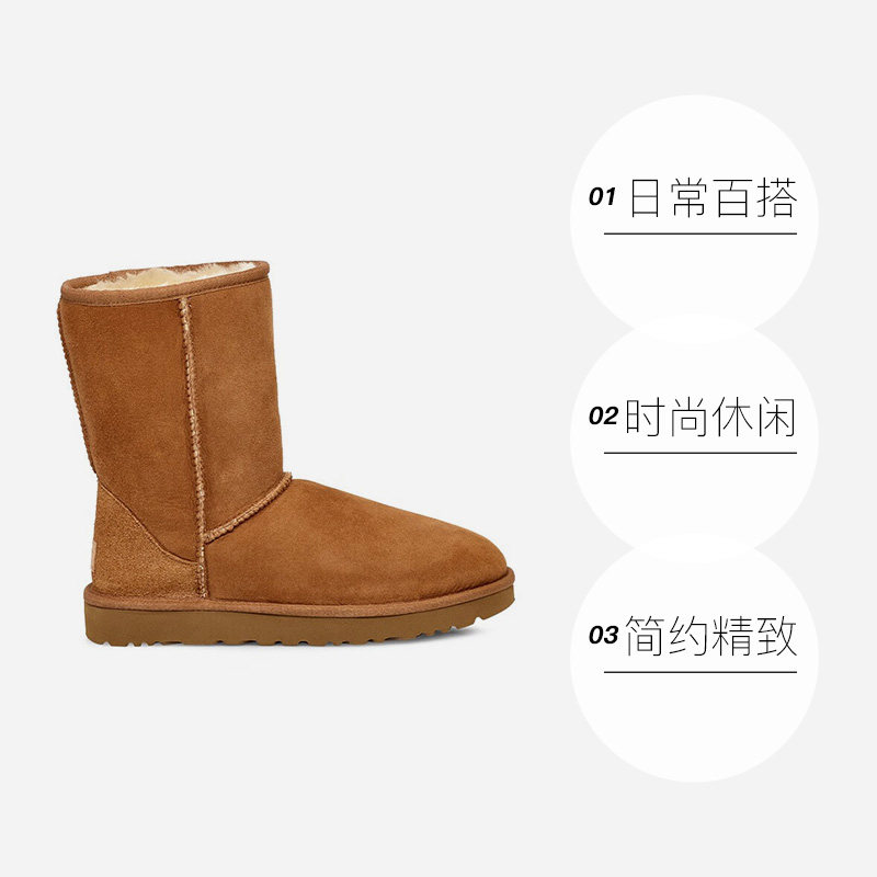 时尚 女士休闲平底圆头纯色经典 UGG冬季 短靴雪地靴1016223 自营